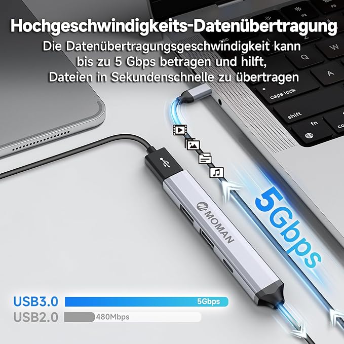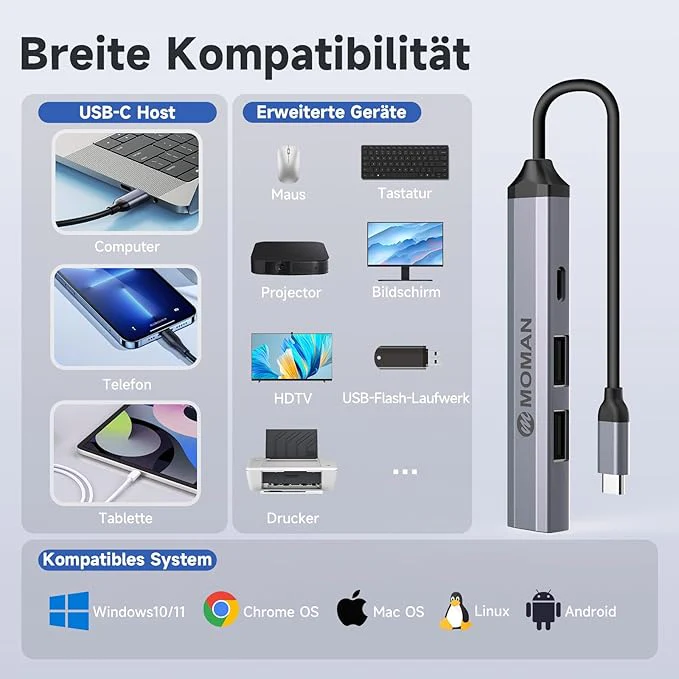 De ultieme hub voor al je apparaten! De CT4 USB C-hub biedt vier krachtige poorten met razendsnelle USB 3.0-ondersteuning voor gegevensoverdracht tot 5 Gbps. Compatibel met de nieuwste iPhone 15/15 Pro, MacBook Air/Pro, iPad, Surface Pro/Go, en Galaxy Tab. Dit is dé oplossing voor iedereen die moeiteloos meerdere apparaten wil aansluiten en gegevens snel wil overzetten.