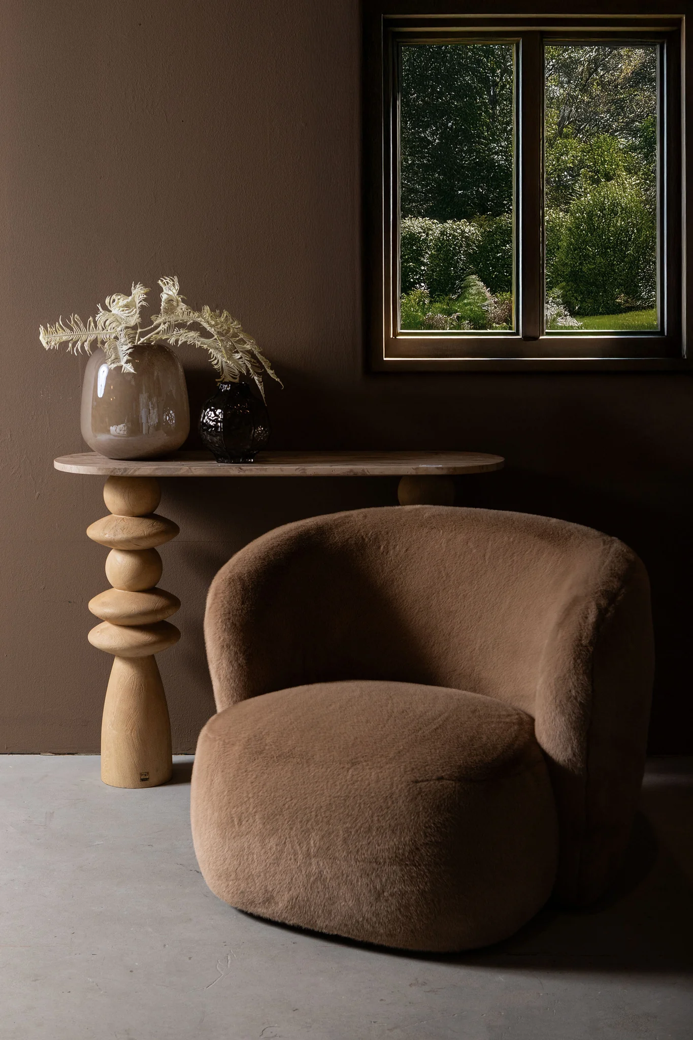 De PTMD Aphrodite Fur fauteuil is een luxueuze en comfortabele stoel die een statement maakt in elk interieur. Bekleed met een zachte, harige stof in warme tinten zoals bruin of mokka, biedt deze fauteuil zowel visueel als fysiek comfort. Het voegt een verfijnde touch toe, waardoor de fauteuil perfect past in moderne, bohemien of eigentijdse interieurs.
