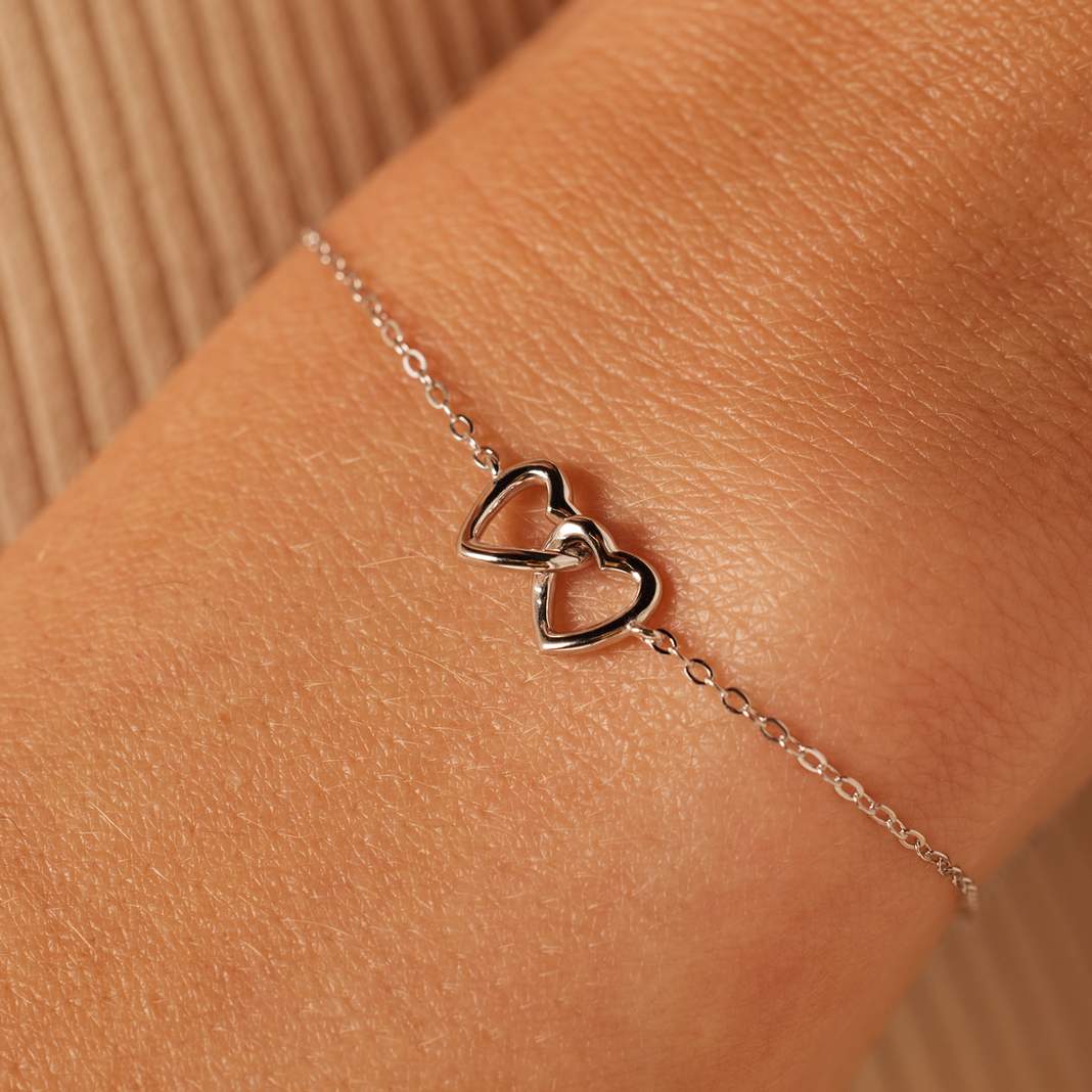 Armband – Twee Verbonden Hartjes – Zilver – 18,5CM – Elegant en Tijdloos Cadeau