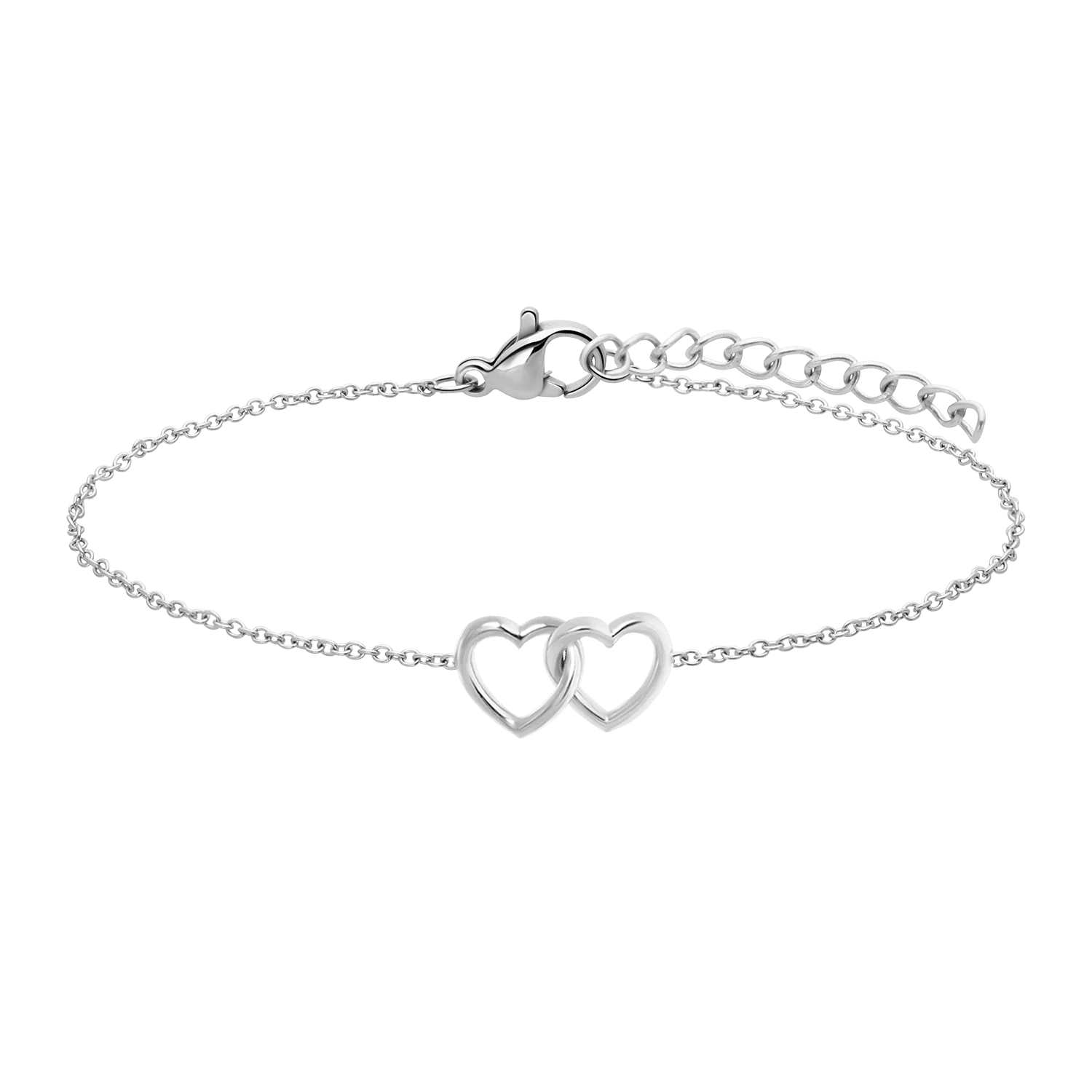 Deze elegante armband met twee open harten staat symbool voor verbondenheid, liefde en samenhorigheid. De twee hartjes zijn subtiel met elkaar verbonden aan de voorkant van de armband, waardoor het ontwerp een mooie betekenis krijgt zonder overdreven opvallend te zijn.