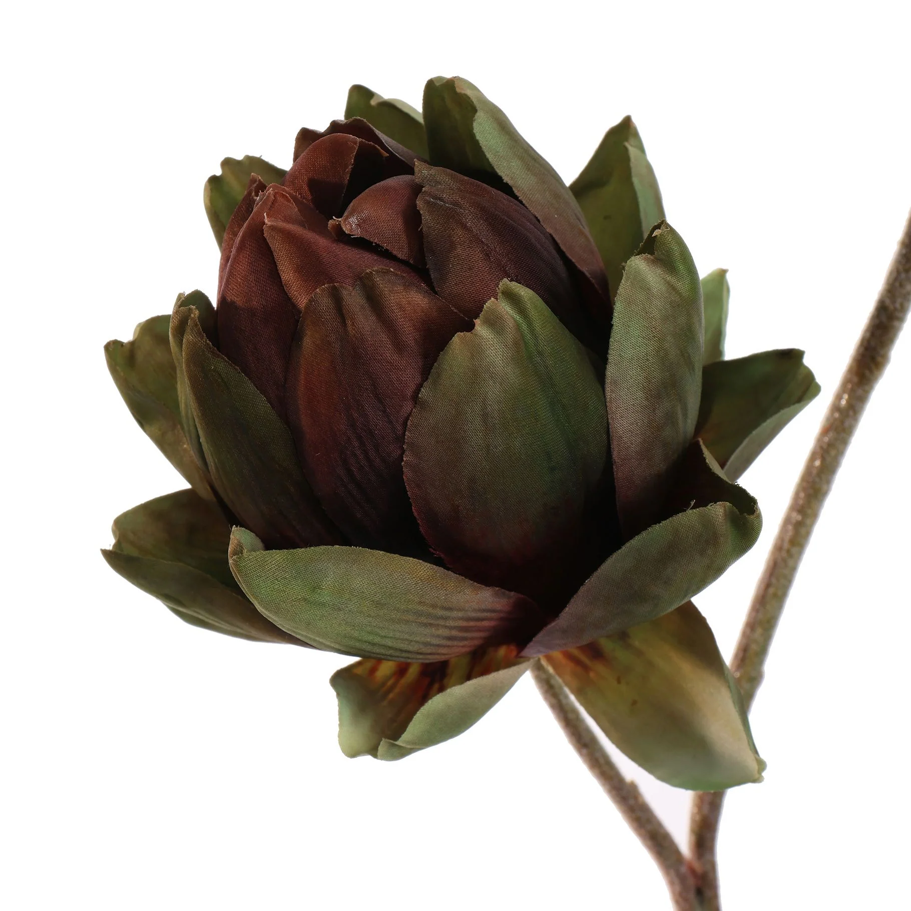 Deze prachtige kunst artisjoktak van 93 cm lang is een echte blikvanger in elk interieur. Met zijn realistische afwerking en diepe, natuurlijke kleuren lijkt hij net echt. De stevige steel en de gedetailleerde bloemknoppen geven een stoere en stijlvolle uitstraling. Perfect om solo in een vaas te zetten of als accent in een groter boeket. Een duurzame decoratie die het hele jaar door mooi blijft.
