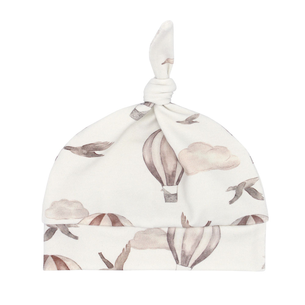 Het mutsje Air Balloons is een Off-White (gebroken wit) knoopmutsje bedrukt met luchtballonnen. Dit mutsje heeft een knoopje bovenop waarmee u zelf eenvoudig de maat iets kunt verstellen. Verkrijgbaar in één maat: maat 50/56 en te combineren met het boxpakje en/of broekje Air Balloons.