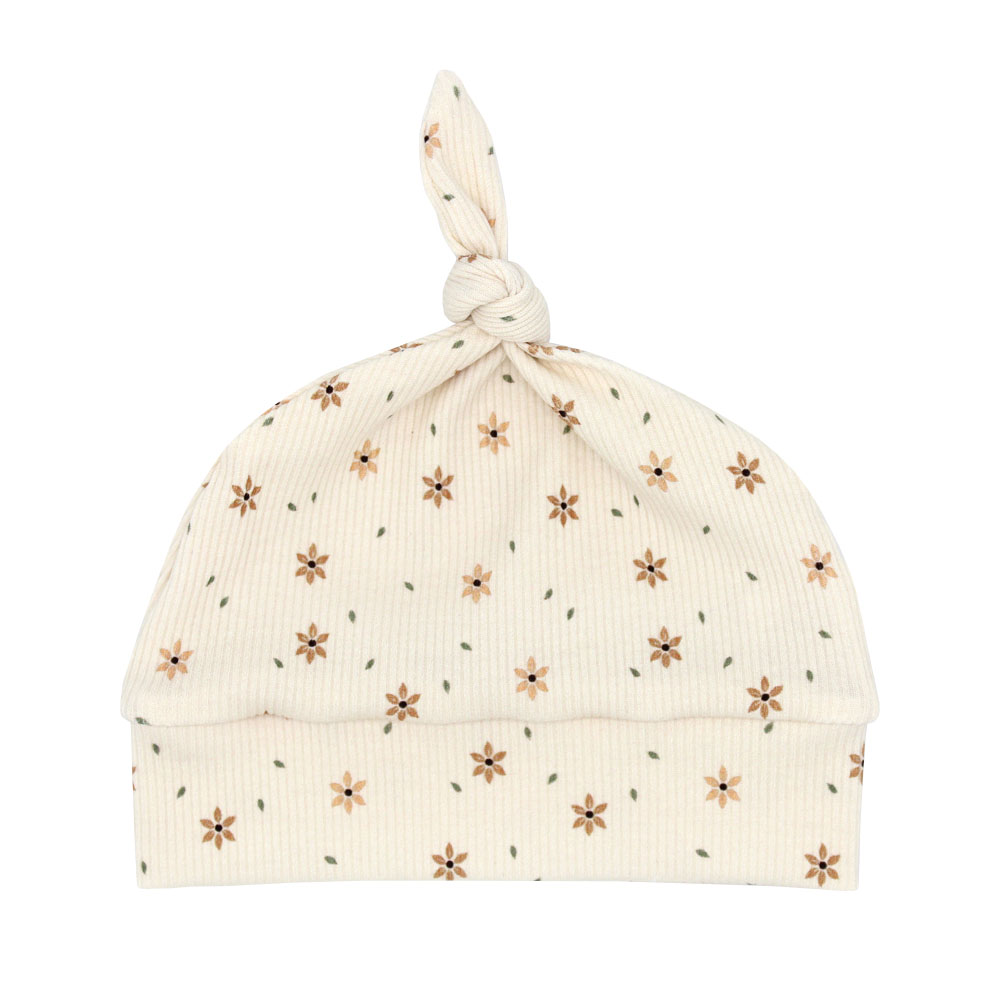 Het babymutsje Starflower is een crème knoopsmutsje bedrukt met kleine bloemetjes. Dit mutsje is afgewerkt met een breed en zacht boordje die rekbaar is om mooi en comfortabel aan te sluiten op het hoofdje van je baby. Met dit mutsje kies je niet alleen voor stijl en comfort, maar ook voor geborgenheid en het gevoelige hoofdje te beschermen.