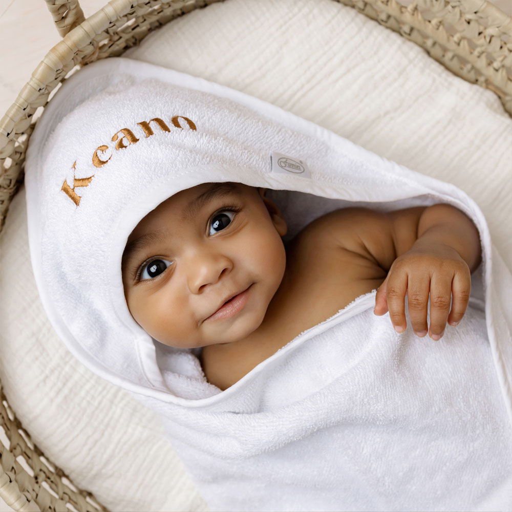 Badcape met naam – Gepersonaliseerde baby badcape van 100% katoen
