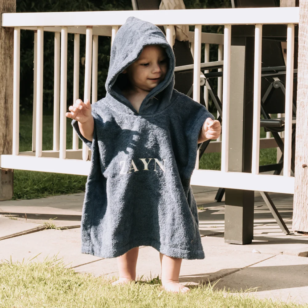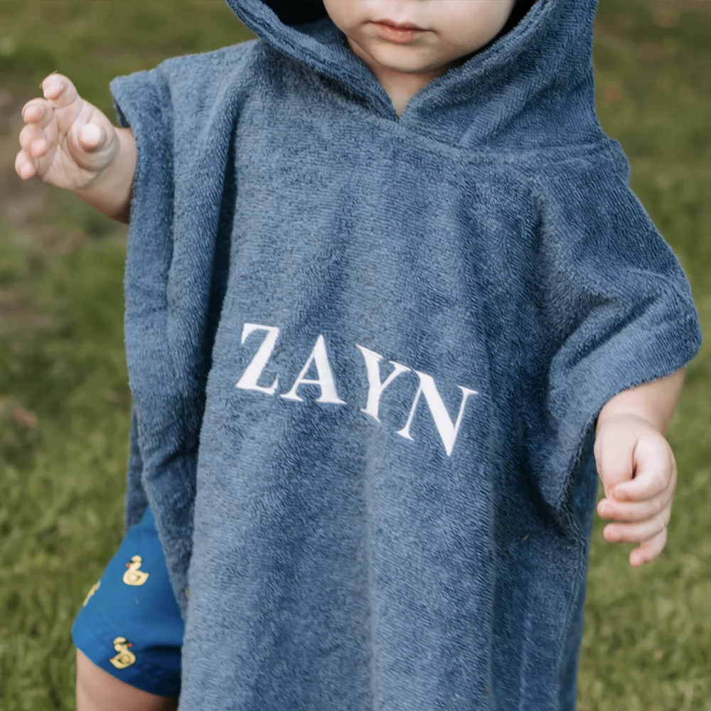 Een badponcho met naam is dé oplossing voor het snel en comfortabel afdrogen van je baby of peuter na het badderen, zwemmen of een dagje strand. Deze gepersonaliseerde poncho is speciaal ontworpen voor jonge, beweeglijke kindjes die niet stil willen staan. Dankzij het slimme ontwerp met capuchon blijft de poncho perfect zitten en heeft je kindje alle vrijheid om te bewegen, zonder dat de handdoek afzakt.