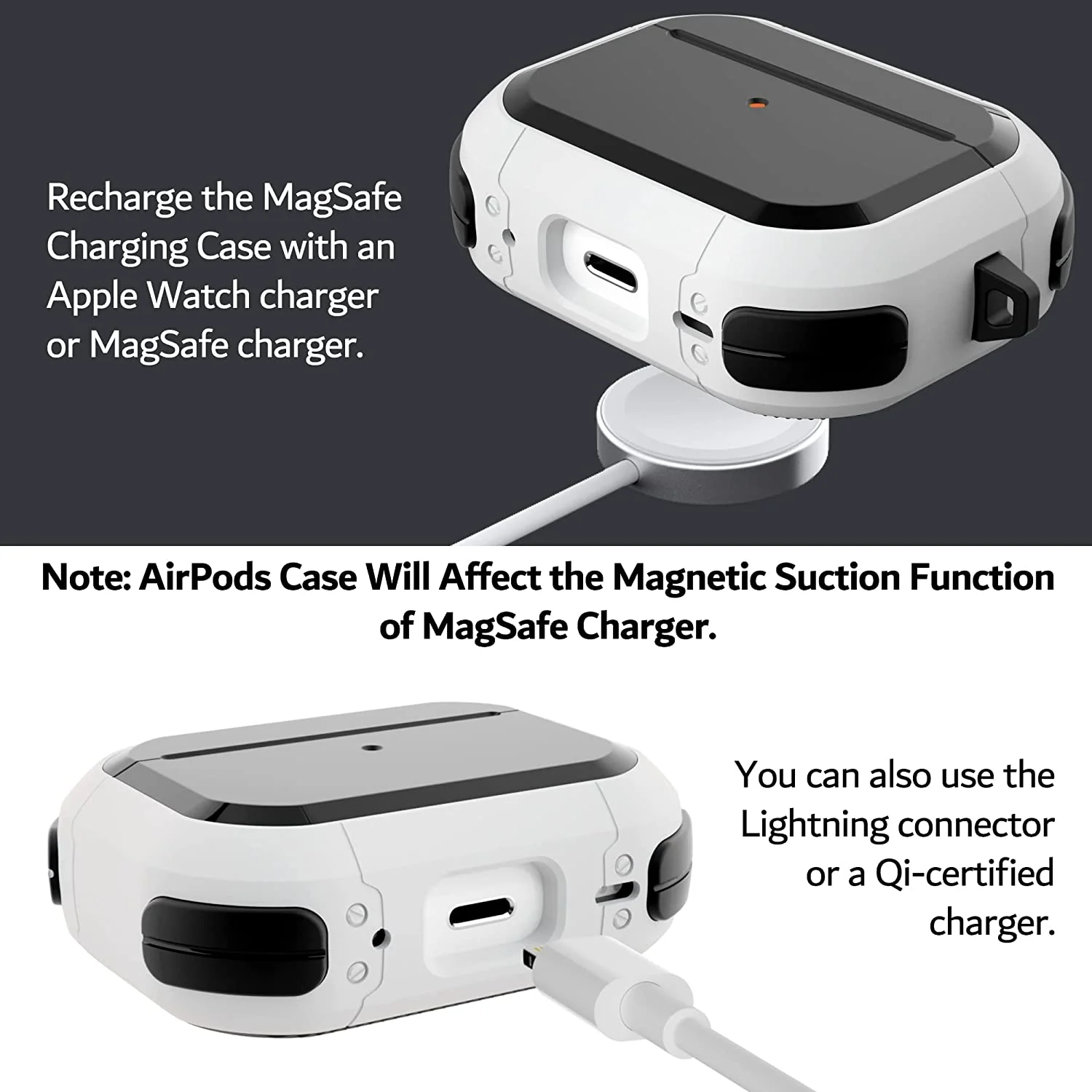 • Draadloos opladen: Ondersteunt draadloos opladen, met LED-lampje zichtbaar aan de voorkant tijdens het opladen. De gezandstraalde binnenkant voorkomt krassen op je AirPods.