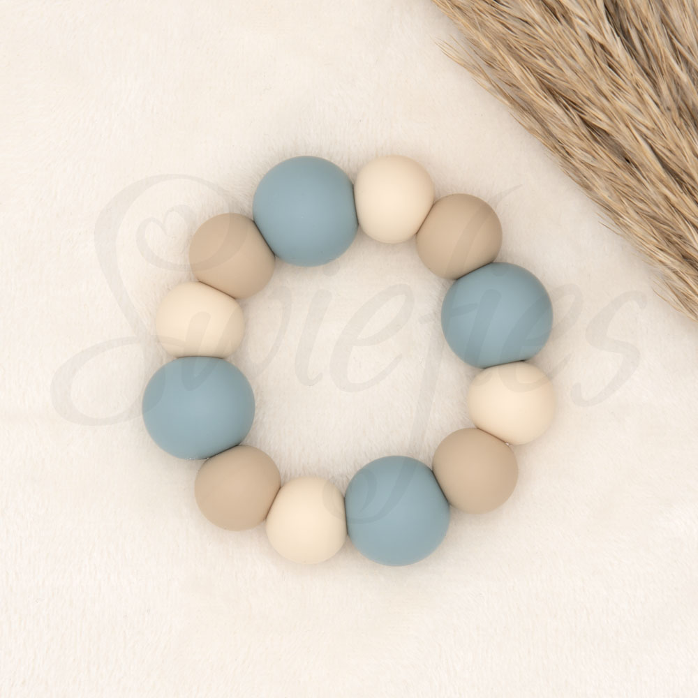 Een Swiefies bijtring is een uniek, stijlvol en veilig product dat de pijn bij doorkomende tandjes verzacht. De bijtring wordt in Nederland met de hand gemaakt van een stevig satijndraad en siliconen kralen.