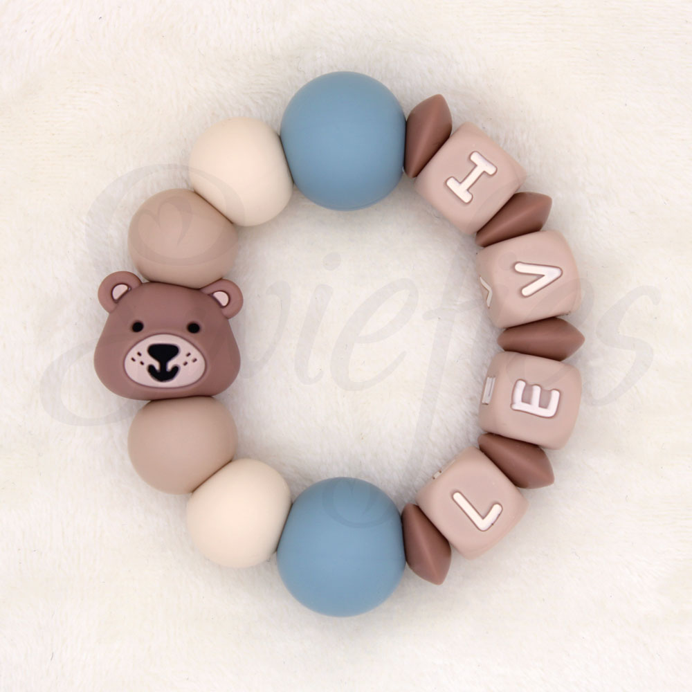 BIJTRING met naam | Beer | Levi | Grijsblauw Beige