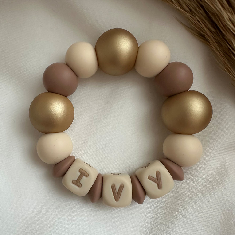 BIJTRING met naam | Matgoud, Hazelnoot, Crème