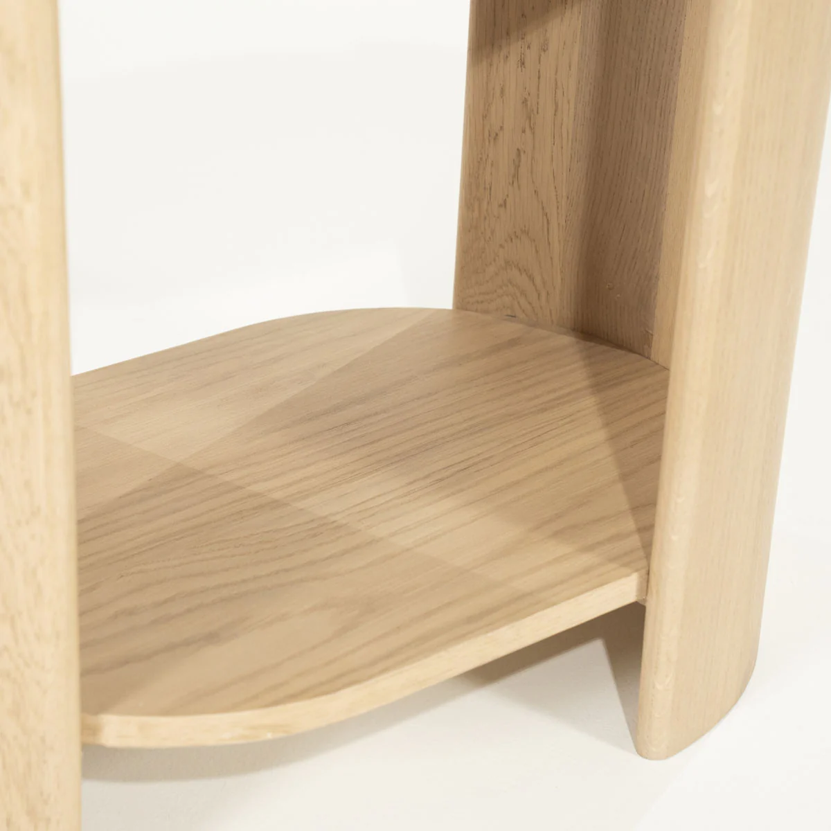 De bijzettafel Don is een elegante tafel van eikenhout, eiken fineer en marmer met een gelakte afwerking. Dankzij het compacte formaat en de praktische plankafstand is deze tafel ideaal voor het plaatsen van decoratie of accessoires in de woonkamer.