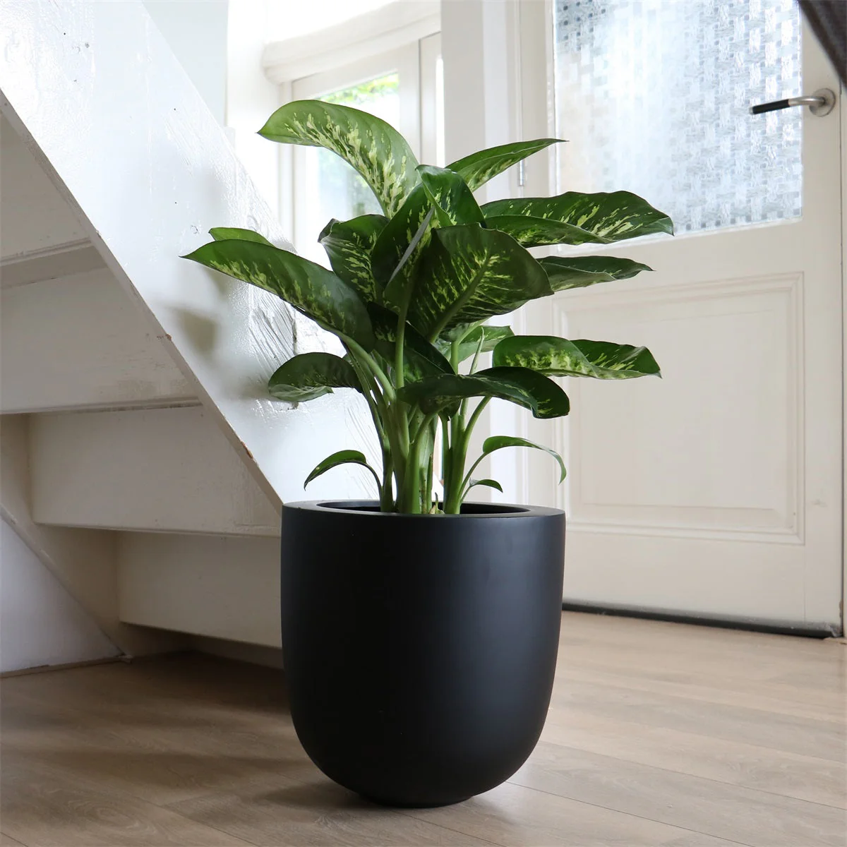 Breng natuur en elegantie samen met de Ducos big black plantenpot. Deze middelgrote fiberstone pot combineert handgemaakt vakmanschap met een modern design, perfect om elke ruimte een natuurlijke uitstraling te geven.
