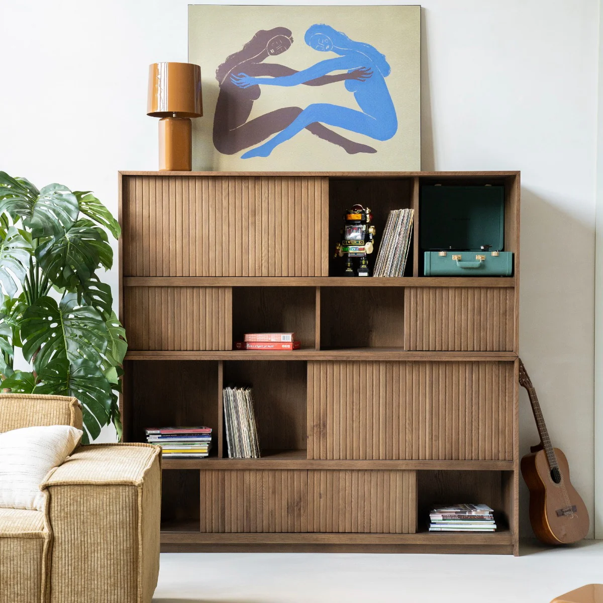 De boekenkast Milo in bruin eikenhout combineert stijlvolle vormgeving met praktische opbergruimte. Met 16 vakken, schuifdeuren en een indeling in twee delen, biedt Milo voldoende plek voor boeken, decoratie en andere persoonlijke spullen. Het gelakte oppervlak maakt schoonmaken eenvoudig en onderhoudsvriendelijk.