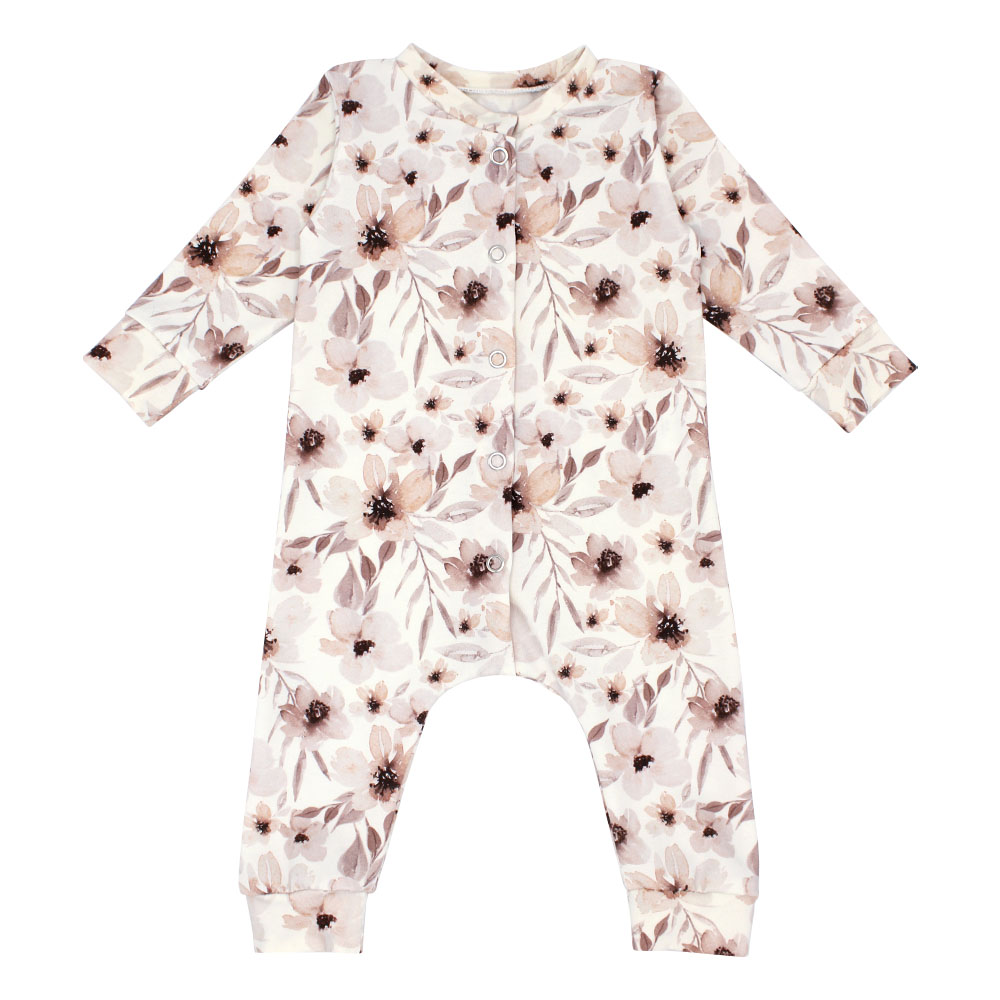 Het boxpakje Floral Ivory is een crème boxpakje bedrukt met mooie bloemen. Verkrijgbaar in maat 50 t/m 68 en te combineren met het haarbandje en/of mutsje Floral Ivory.