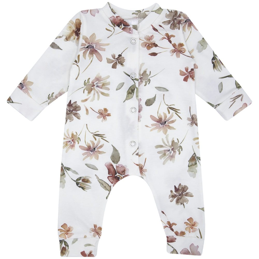 Het boxpakje Florance is een Off-White (gebroken wit) boxpakje bedrukt met mooie bloemen. Verkrijgbaar in maat 50 t/m 68 en te combineren met het haarbandje en/of mutsje Florance.