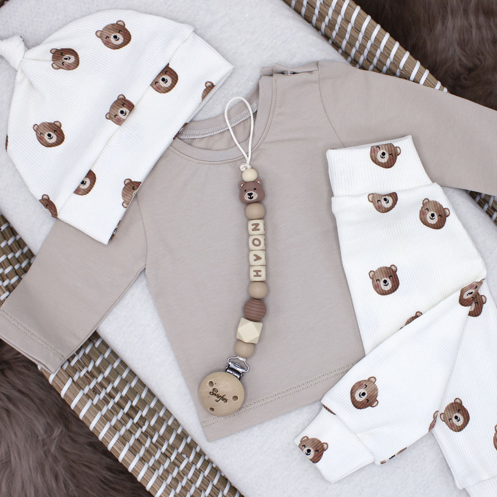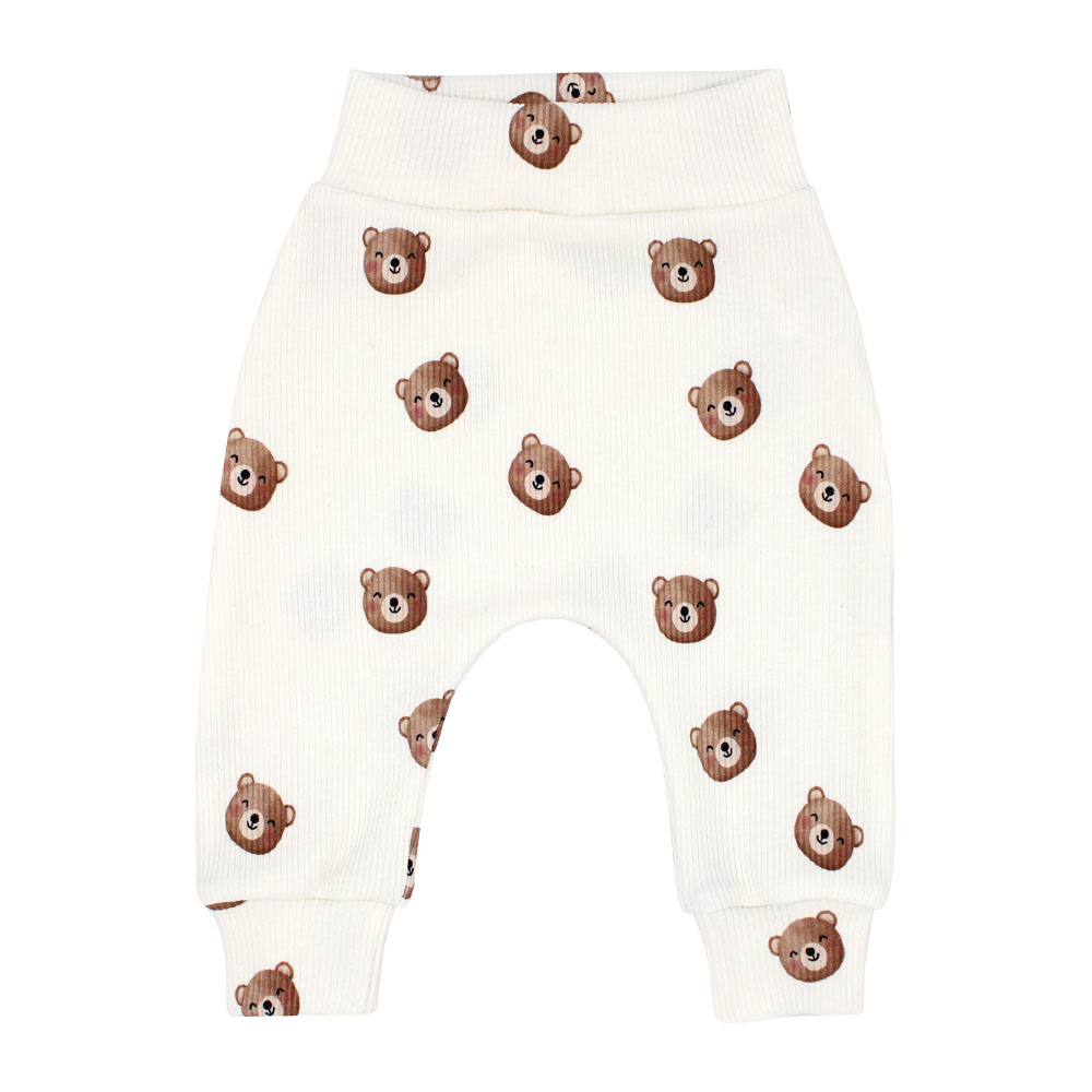 Het broekje Teddy Beren Rib is een ecru baggy broekje bedrukt met schattige beertjes. Dit broekje is afgewerkt met brede boordjes aan de onderkant en een brede en comfortabele tailleband. Hij voelt zacht aan en is rekbaar om vrij en comfortabel in te slapen en bewegen.