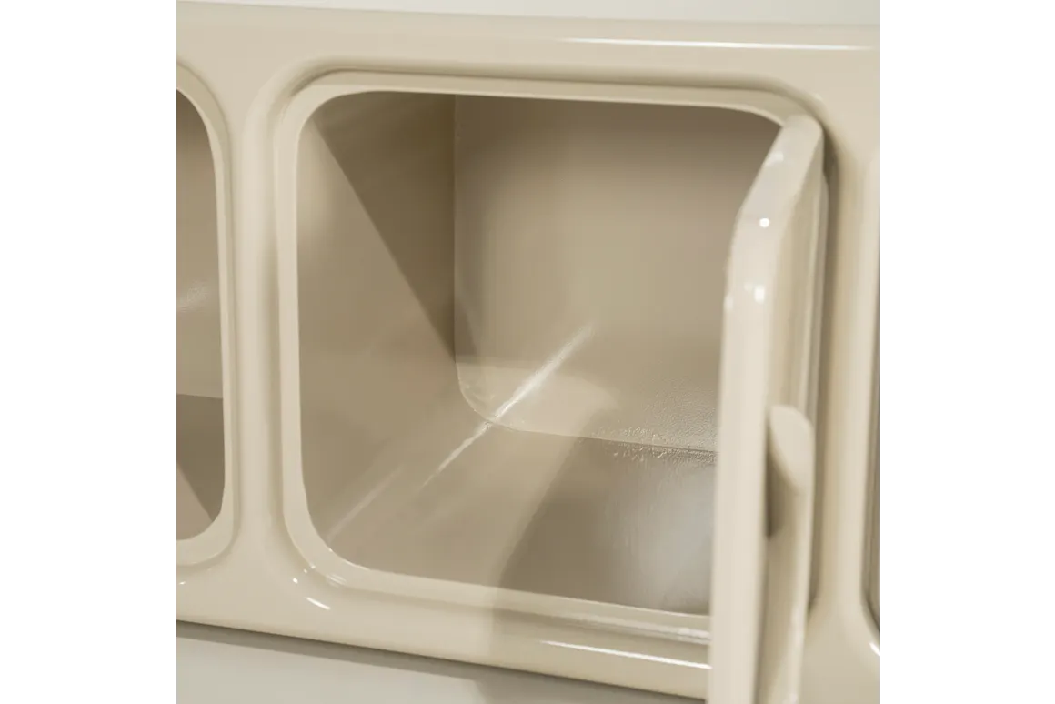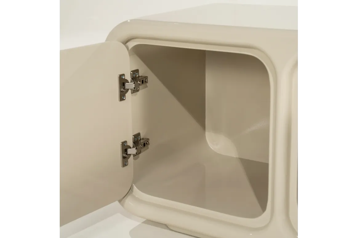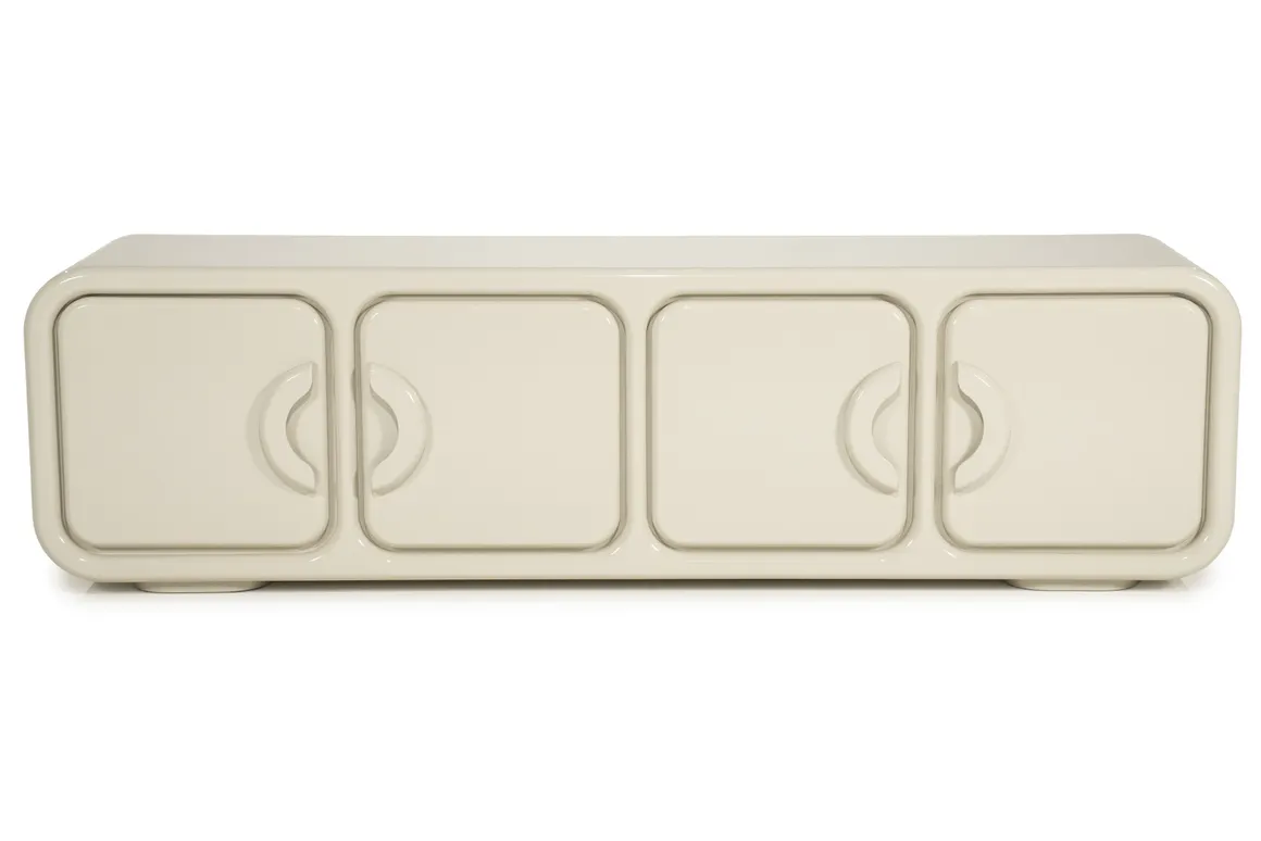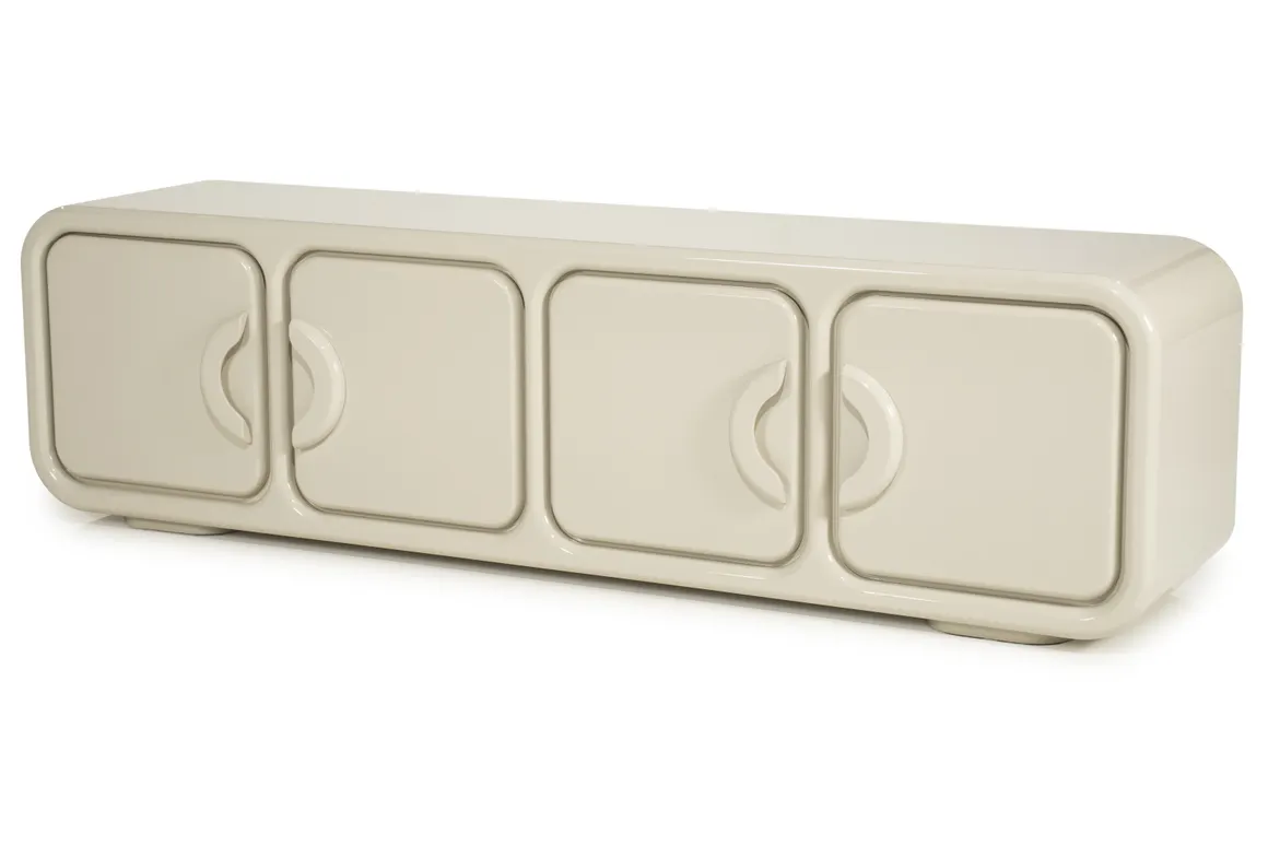 Het By-Boo Gubby TV-meubel in groen is een echte eyecatcher dankzij de strakke vormgeving en glanzende high gloss afwerking. Het moderne design geeft je woonkamer een luxe uitstraling, terwijl het meubel praktisch blijft in gebruik. Perfect voor een moderne, design- of trendy woonkamer.