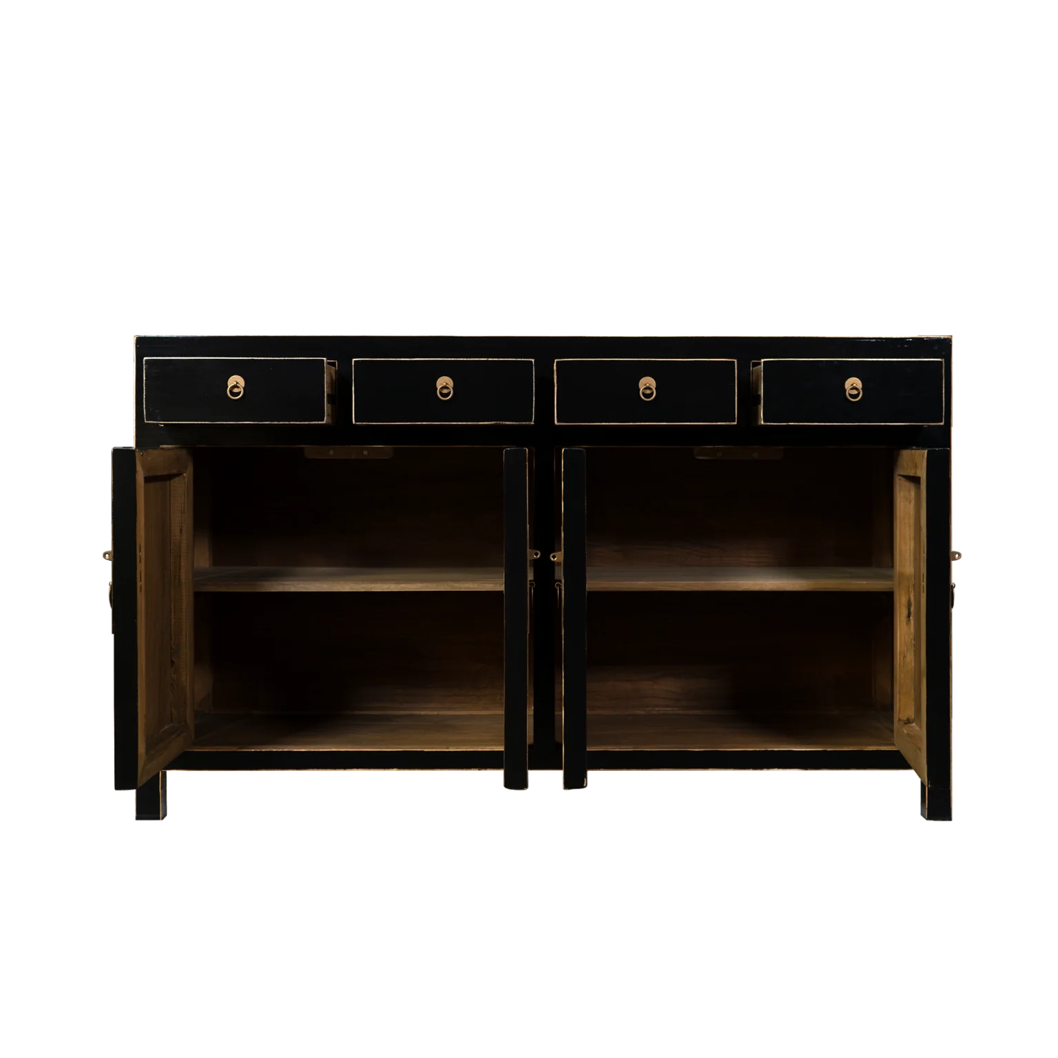 Een meubel waarvan we de oorspronkelijke diep zwarte kleur bewust in stand hebben gehouden. Het accentueert de statigheid. Het verhaal achter dit Aziatische kunststukje kennen we niet. Het werd als etaleer-materiaal gebruikt in een winkeltje dat werd gerund door een Chinees echtpaar. Na een grondige opknapbeurt is zij in al haar grandeur hersteld.