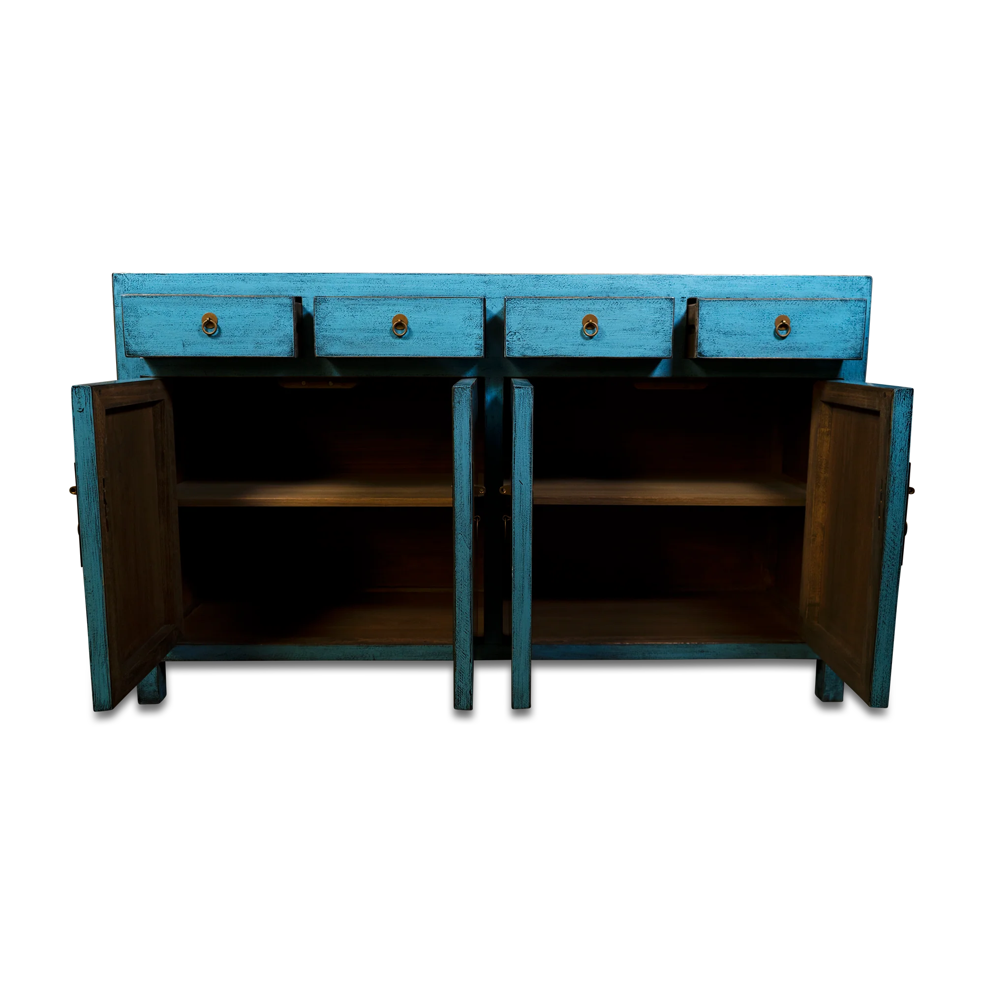 Dit antieke Chinese dressoir heeft een blauwe kleur en een vintage finish. Deze tijdloze schoonheid van een dressoir is echt oud en opgeknapt. Met zijn stoere ontwerp een echte sfeermaker!