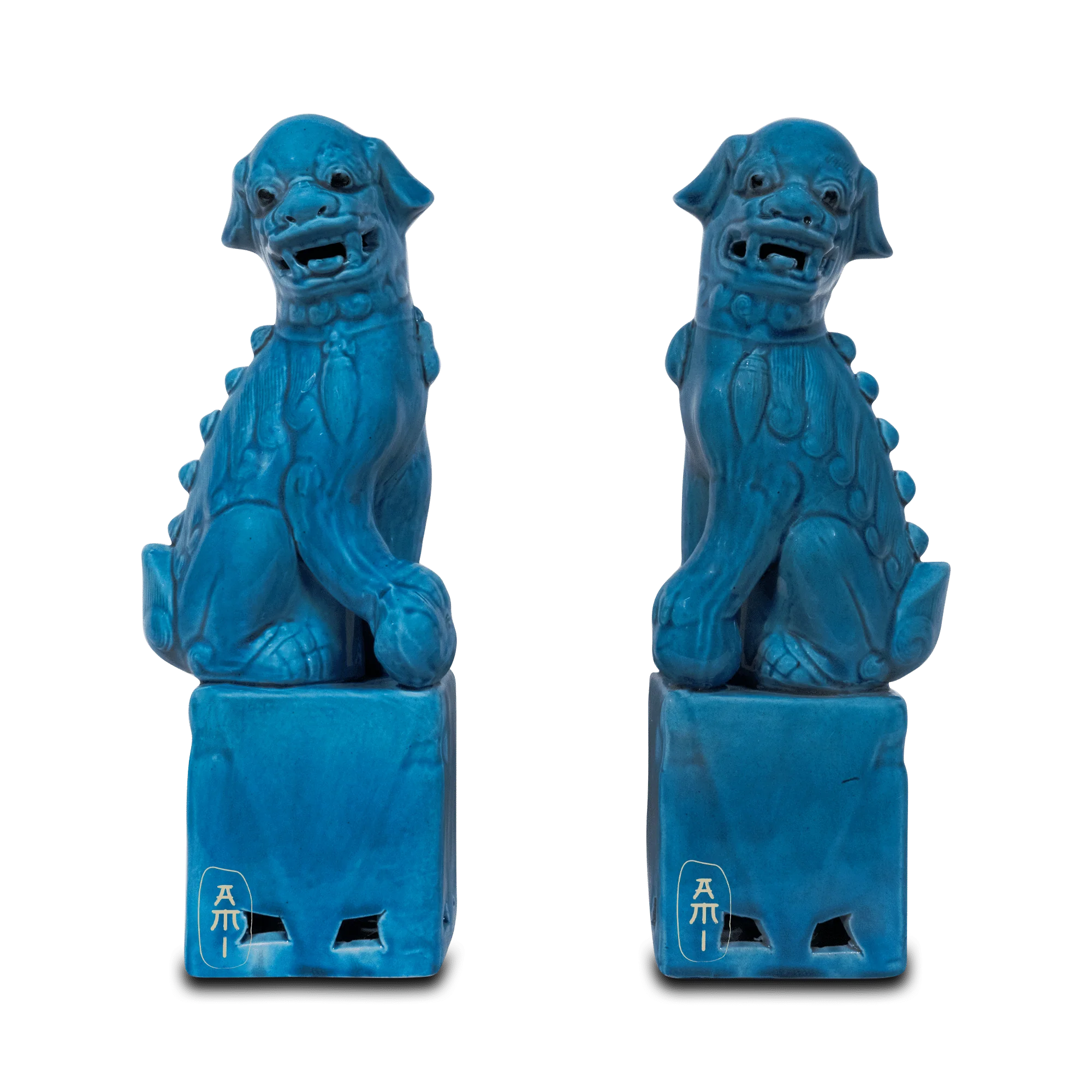 Deze prachtige blauwe Chinese Tempel Leeuw (Fu-hond) is een symbool van zorgzaamheid en bescherming. De leeuw staat trots met haar welp onder haar poot, wat haar beschermende en zorgzame karakter benadrukt. Dit beeld is gemaakt van hoogwaardig Chinees keramiek en heeft een verfijnde afwerking, waardoor het een elegant en krachtig statement maakt in elk interieur.