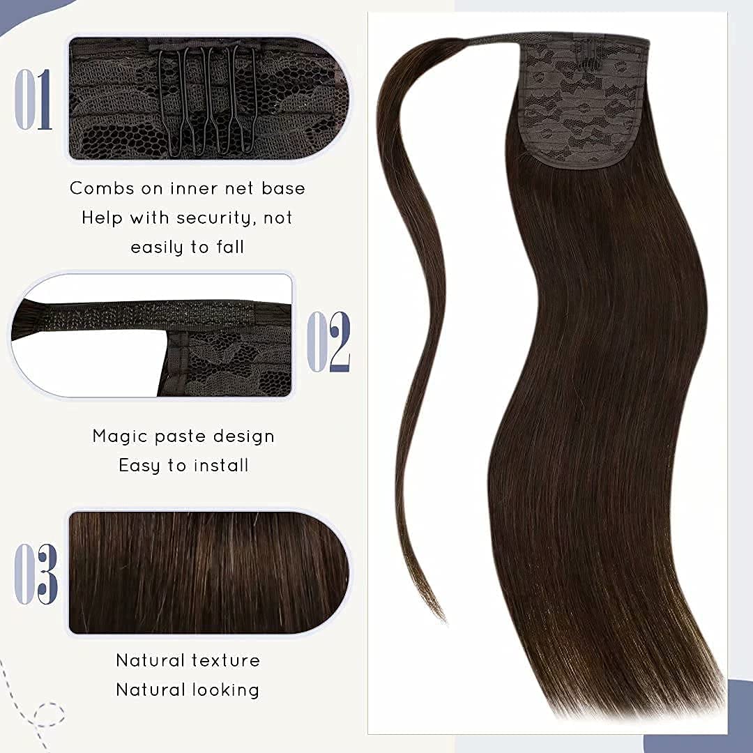 Clip-In Paardenstaartverlenging | 55CM | 100 Gram | Kleur #2 Donkerbruin | Verfbaar | Clip-in