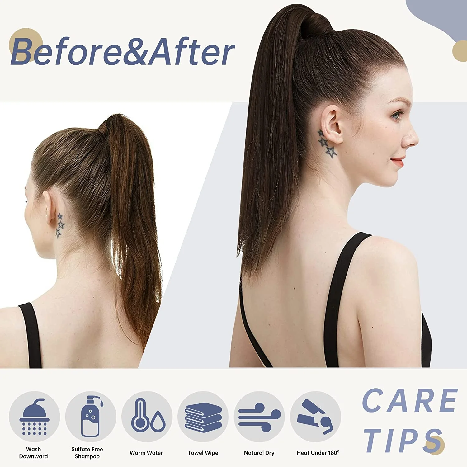 - In slechts een paar seconden kun je een lange, volle paardenstaart creëren met de eenvoudige clip-in installatie. Geen haaruitval, geen klitten. Draag het laag of hoog, afhankelijk van je stijl en behoeften, ontworpen om je een jeugdige en energieke uitstraling te geven.