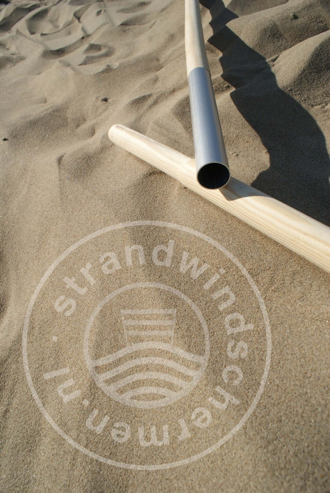 Deelbare houten Stok (inschuif) voor onze Strand en Camping Windschermen. Lengte: 1.80 mtr.