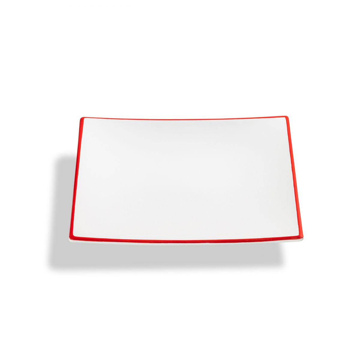 Dessertbord vierkant – Rand robijnrood – 20 x 20 cm