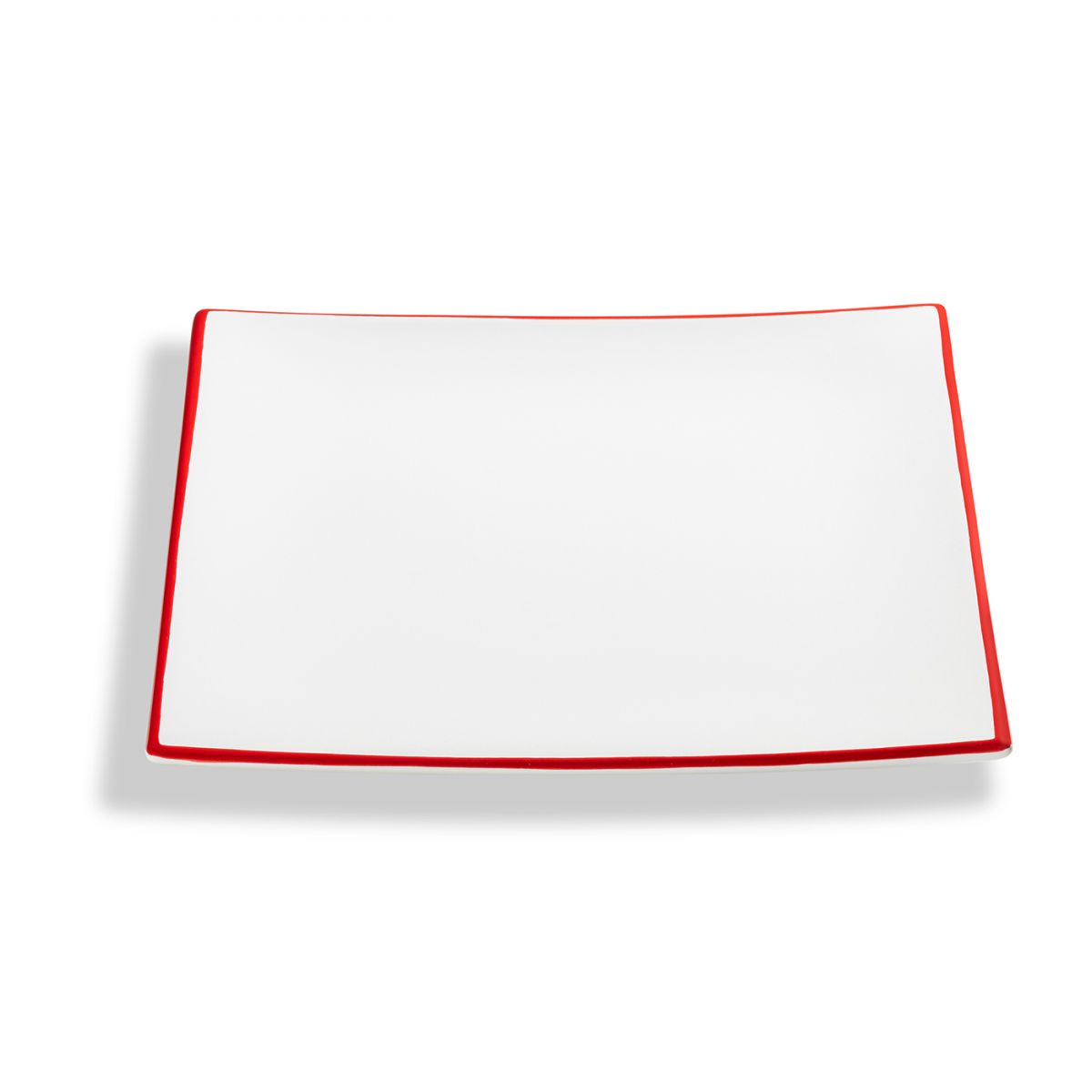 Dinerbord vierkant – Rand robijnrood – 26 x 26 cm