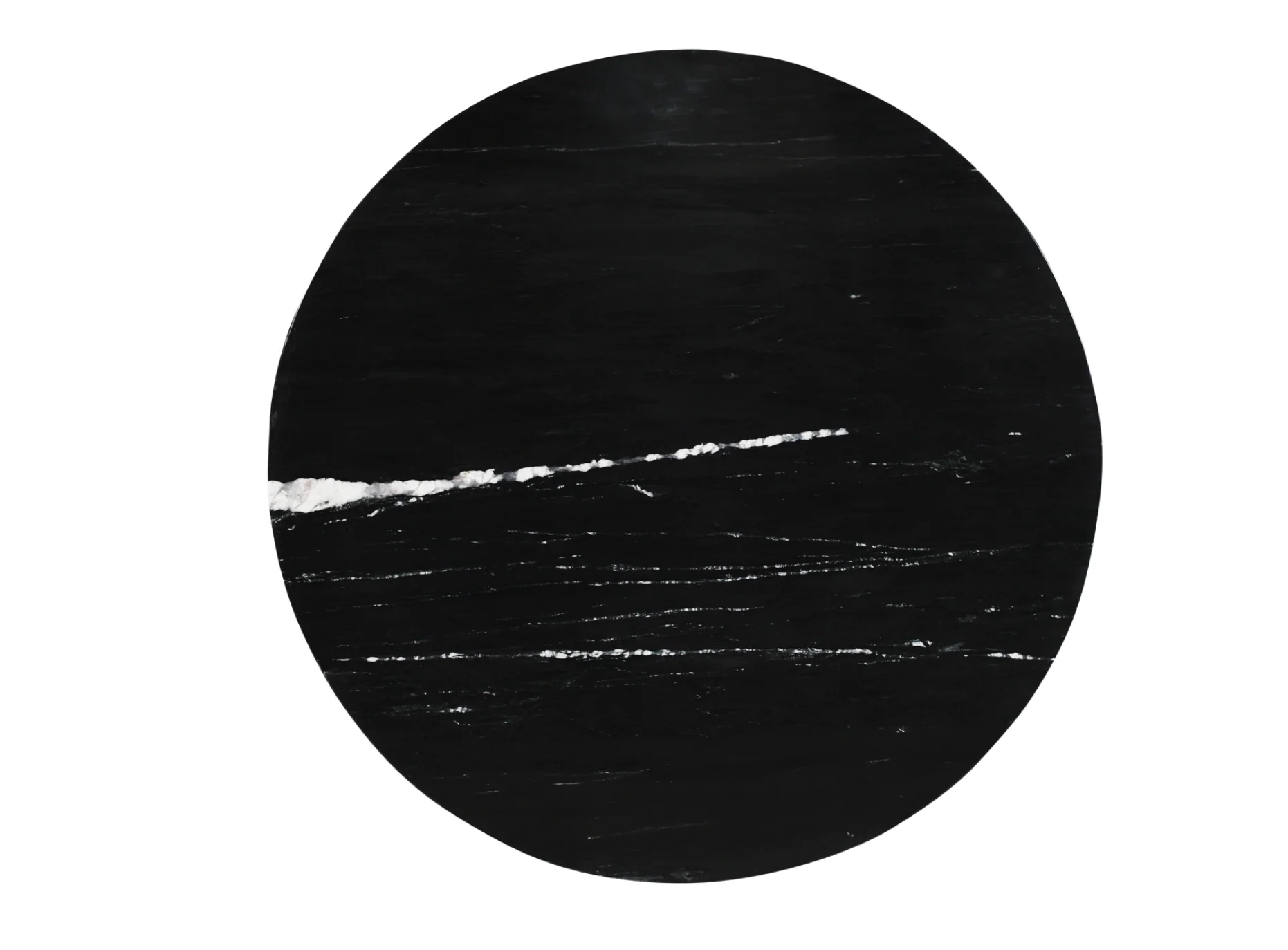 De Diro Black Marble salontafel is een statement piece voor je interieur, met een strak zwart marmeren blad dat zorgt voor een luxe en verfijnde uitstraling. Het opvallende ontwerp met drie bolvormige onderstellen voegt een moderne en artistieke flair toe, waardoor deze tafel niet alleen functioneel is, maar ook een uniek visueel accent in je woonkamer creëert. De ronde vorm zorgt voor een zachte, uitnodigende uitstraling die perfect past in diverse interieurstijlen, van eigentijds tot modern klassiek.