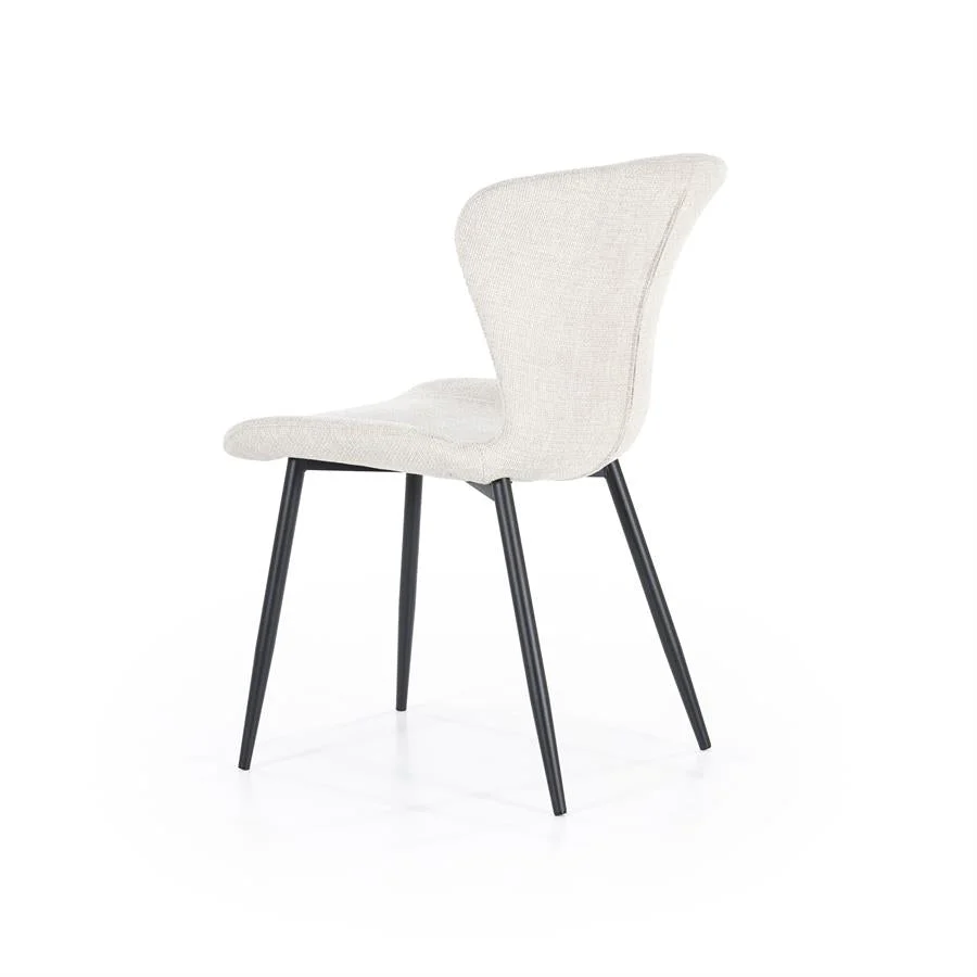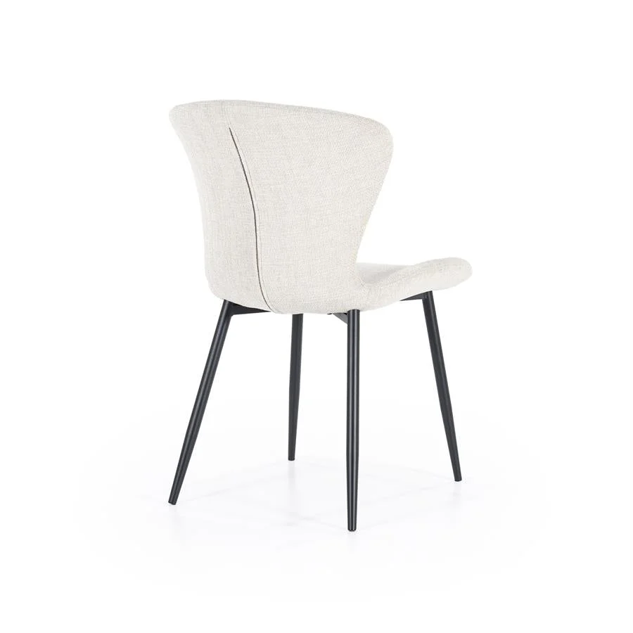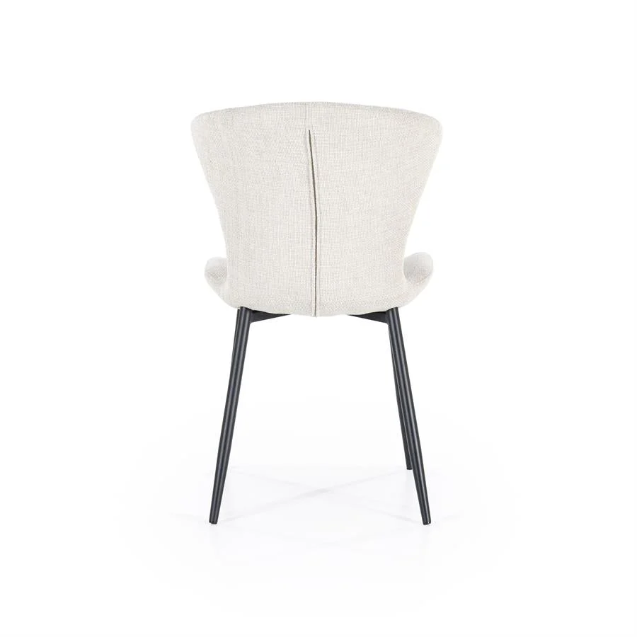 - Robuust en elegant frame: het onderstel is gemaakt van stevig, zwart metaal, wat niet alleen voor stabiliteit zorgt, maar ook een modern contrast vormt met de lichte bekleding.