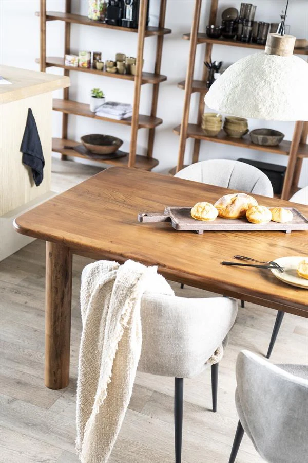 De eettafel Julian is een rechthoekige eettafel van massief acaciahout met een naturel uitstraling. Het royale formaat maakt de tafel geschikt voor middelgrote tot grotere eetkamers. De natuurlijke afwerking benadrukt de warme houttinten en zorgt voor een duurzame en strakke uitstraling.