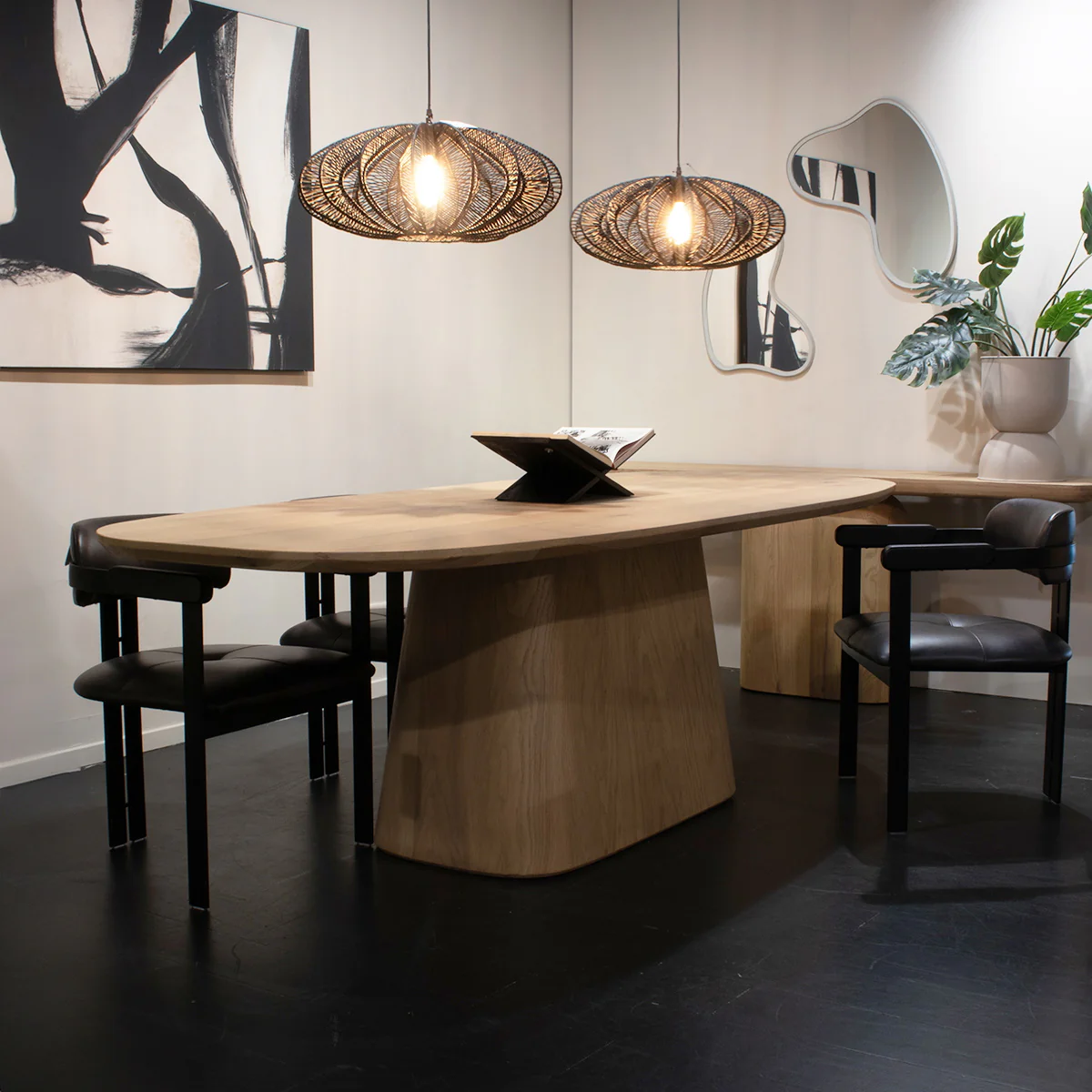 De eettafel Nola is een uitgevoerd in eiken fineer met een gelakte afwerking. De naturel kleur zorgt voor een warme en tijdloze uitstraling die past in diverse interieurstijlen. Dankzij het ruime formaat is deze tafel ideaal voor gezellige diners met familie en vrienden.