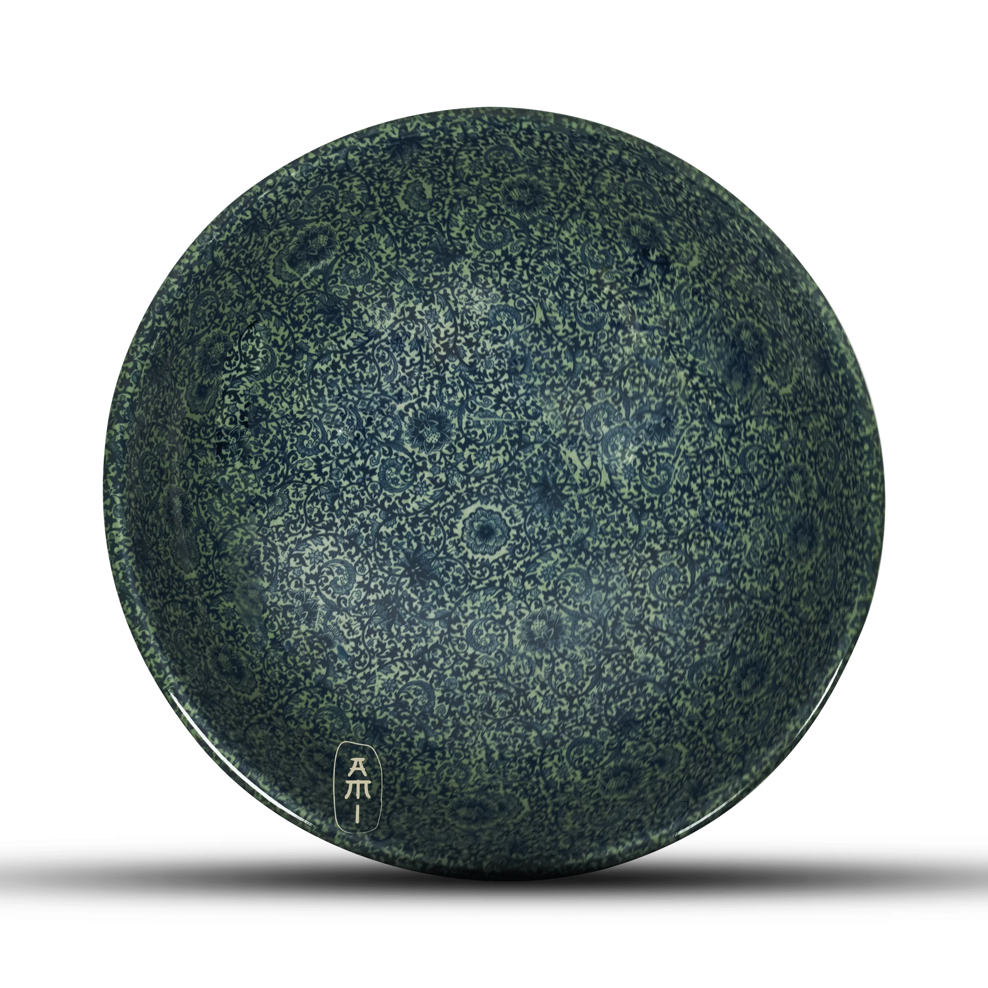 Deze diepe groene keramische kom heeft de volgende afmetingen: