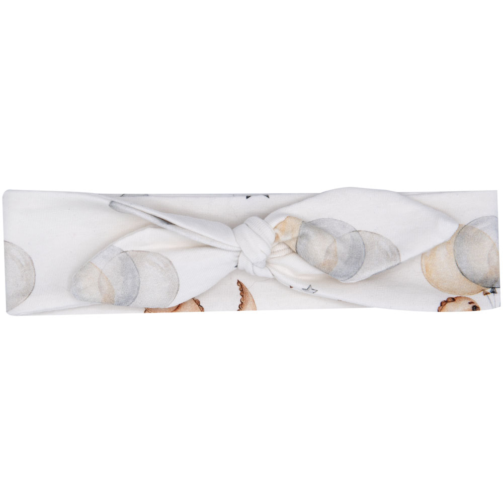 Het haarbandje Cloudy Dino is een Off-White (gebroken wit) haarbandje bedrukt met een schattige Dino en eenvoudig door uzelf te knopen. Het haarbandje is geschikt voor kindjes tot ongeveer 1 jaar en te combineren met het boxpakje en/of broekje Cloudy Dino.