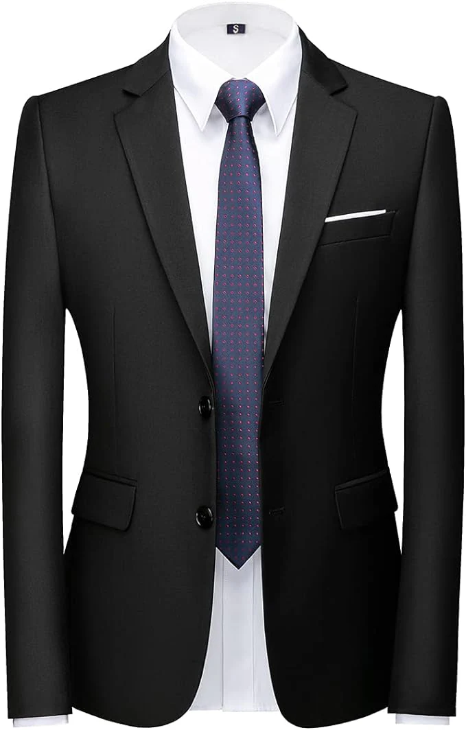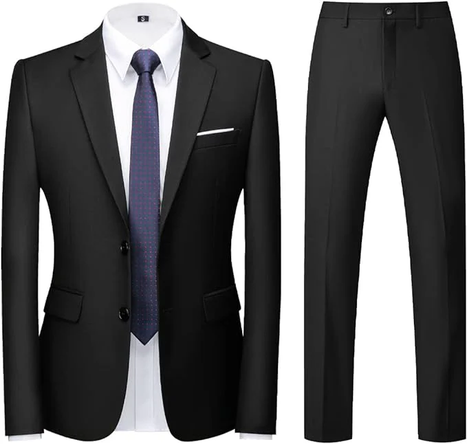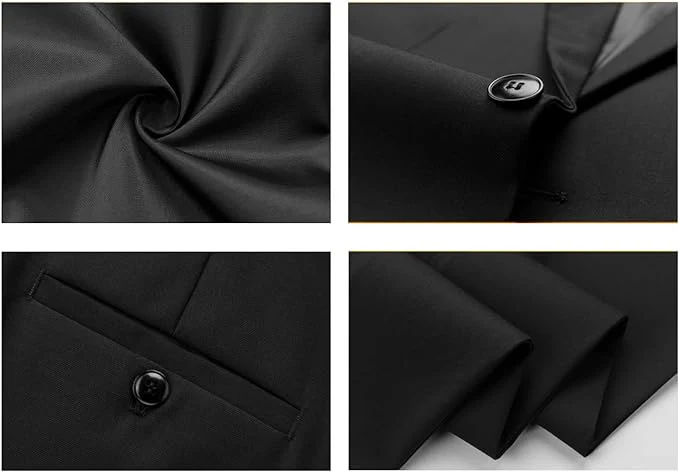 - Elegant Ontwerp: Het zwarte slim fit pak beschikt over een single-breasted jasje met een ingekeepte reverskraag, een borstzak, twee voorflapzakken en vier knopen op elke mouw.