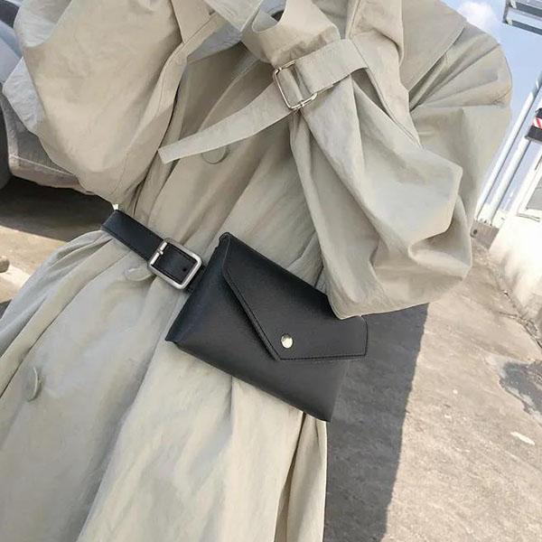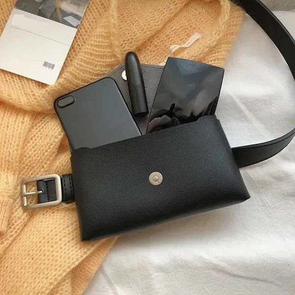 Heuptas voor dames Eenvoudige geperforeerde heuptas voor dames Telefoontassen voor dames Casual Pack Vrouwelijke zwarte portemonnee