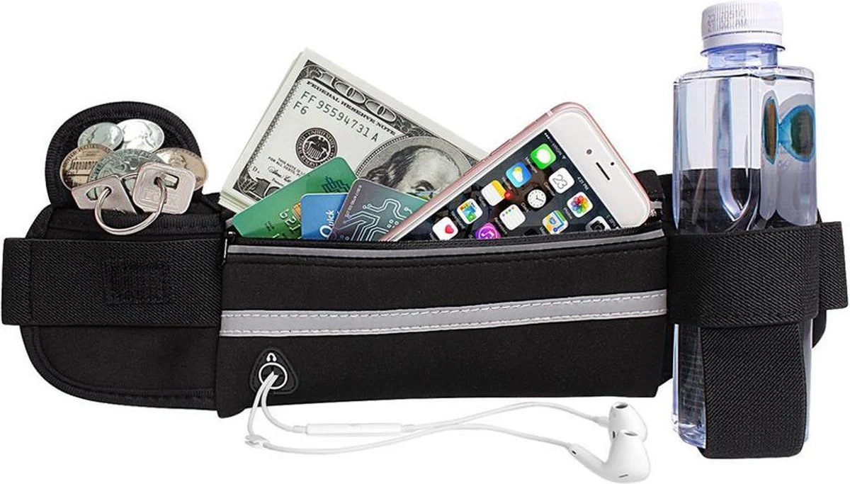 Heuptas voor Hardlopen – Uniseks Sportheuptas met Reflecterende Strepen, Verstelbare Riem en Smartphonevak – Zwart – Eén Maat