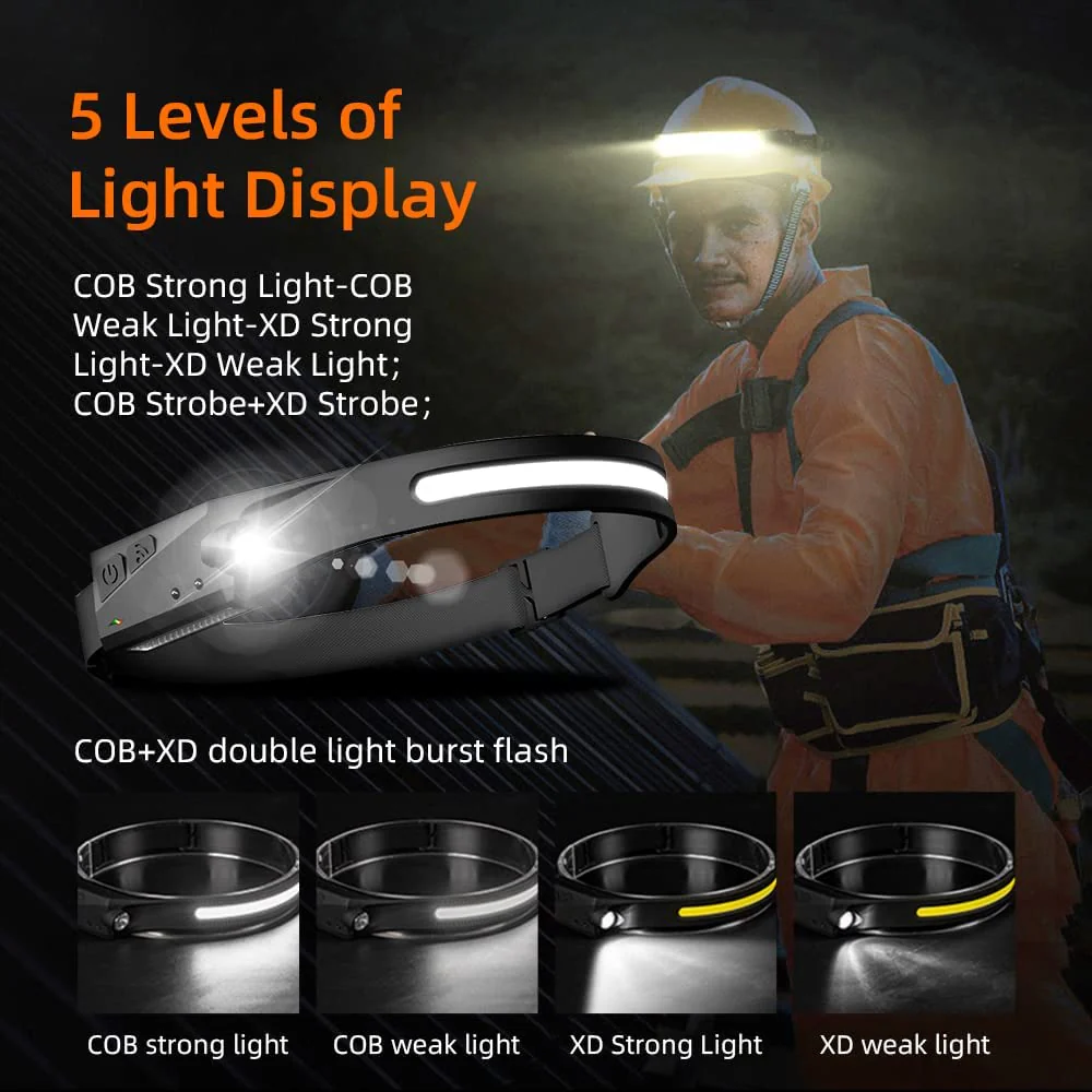 Intelligente LED Hoofdlamp – Oplaadbaar met 5 Lichtstanden, Waterdicht en Lichtgewicht
