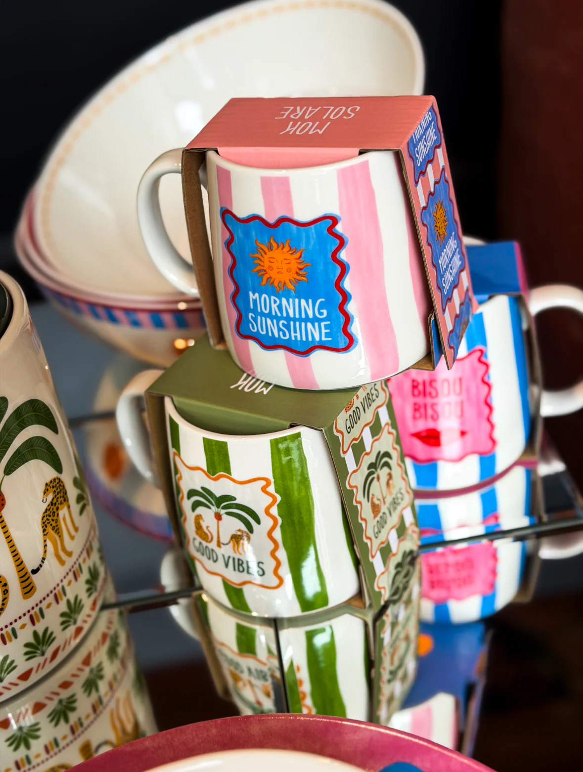 Begin je dag met een glimlach dankzij deze prachtige mokken, verkrijgbaar in drie unieke motieven die perfect aansluiten bij onze serviescollectie. Ideaal voor koffie, thee of warme chocolademelk!