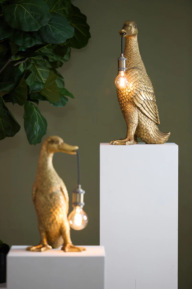 Ontdek de charme van de Light & Living Tafellamp Duck, een unieke aanvulling op elk interieur. Deze tafellamp combineert functionaliteit met een opvallend design, beschikbaar in de kleuren zwart en brons. Met afmetingen van 24x23x48,5cm of 32x31x65cm past deze lamp perfect op elke tafel of bureau. Hoewel de lichtbron niet is inbegrepen, biedt deze lamp de vrijheid om je eigen keuze te maken, passend bij jouw stijl en lichtbehoefte. Gemaakt van duurzaam polyresin, belooft de Light & Living Tafellamp Duck langdurig plezier en een sfeervolle verlichting in elke ruimte.