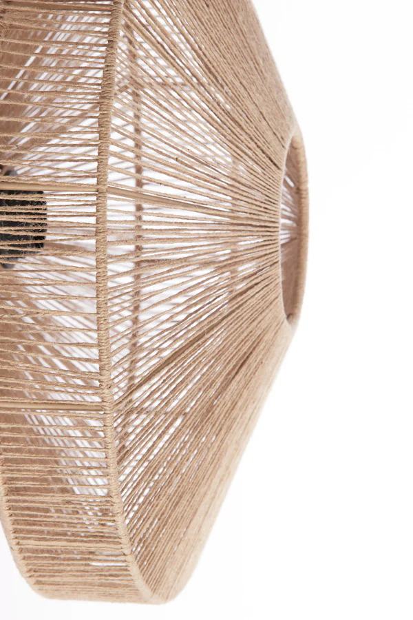 Gemaakt van hoogwaardig ijzer en katoen, biedt deze lamp niet alleen duurzaamheid maar ook een warme, natuurlijke uitstraling. Met een diameter van 43 cm past deze lamp perfect boven een bureau, naast je bed of in de hal, en voegt overal een gezellige sfeer toe.