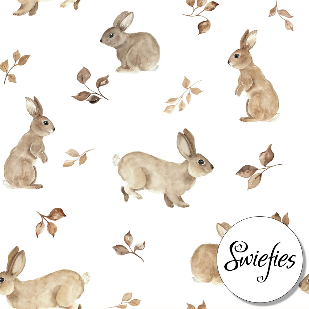 Longsleeve Rabbit & Leaves is een Off-White (gebroken wit) shirtje bedrukt met bruine konijntjes en blaadjes. Dit shirtje heeft lange mouwen en een ronde hals. Daarnaast zitten er op de schouder drukknoopjes wat het aan- en uitkleden makkelijker maakt. Verkrijgbaar in maat 50 t/m 80 en te combineren met een broekje, haarbandje en/of mutsje.