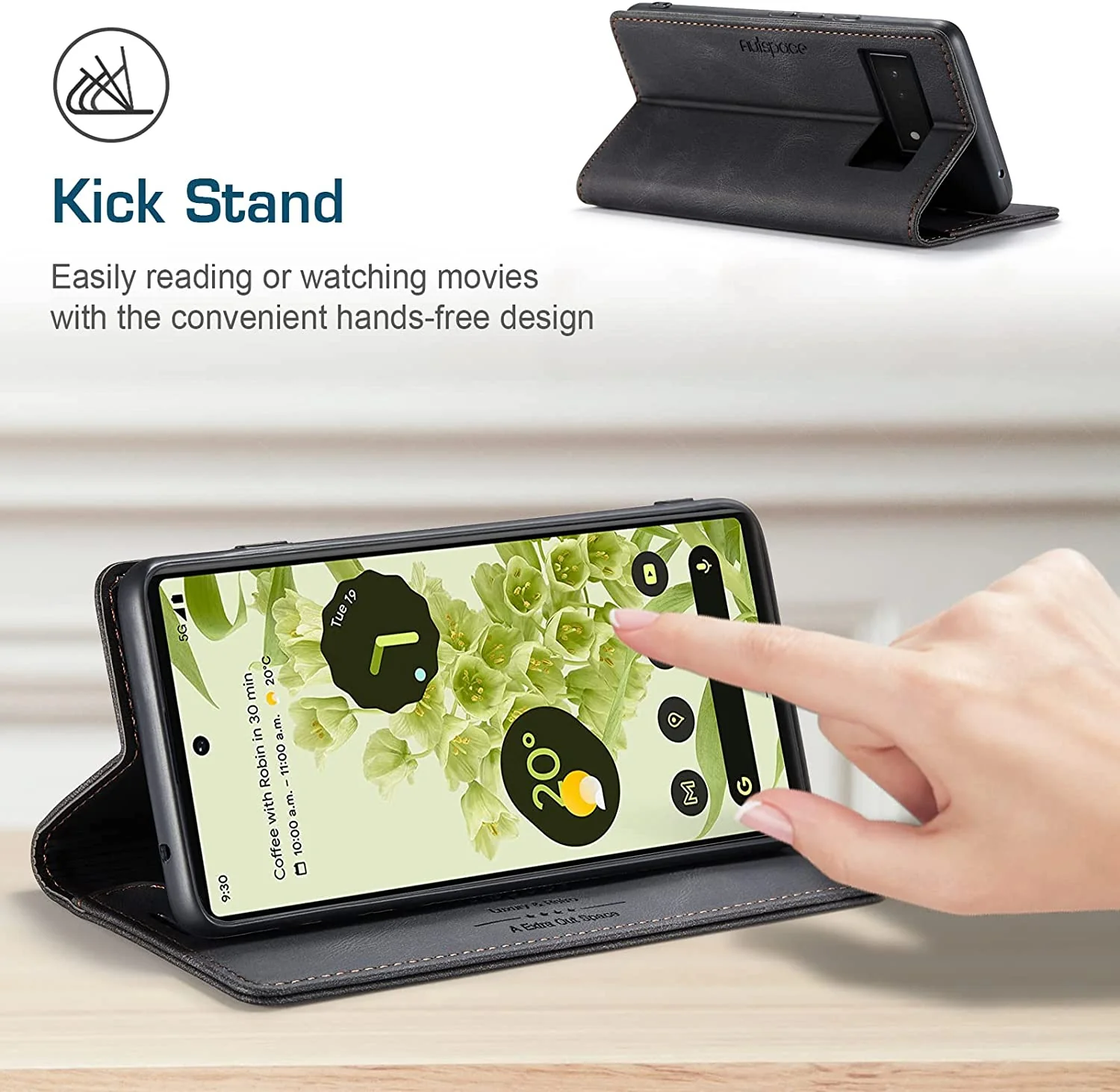 Multifunctioneel: pasjesvak en 1 geldvak, combineer de gsm-hoes en de portemonnee in één. De Google Pixel 6 flipcase met verstelbare standaard, ideaal om video’s te bekijken, naar muziek te luisteren of op internet te surfen.