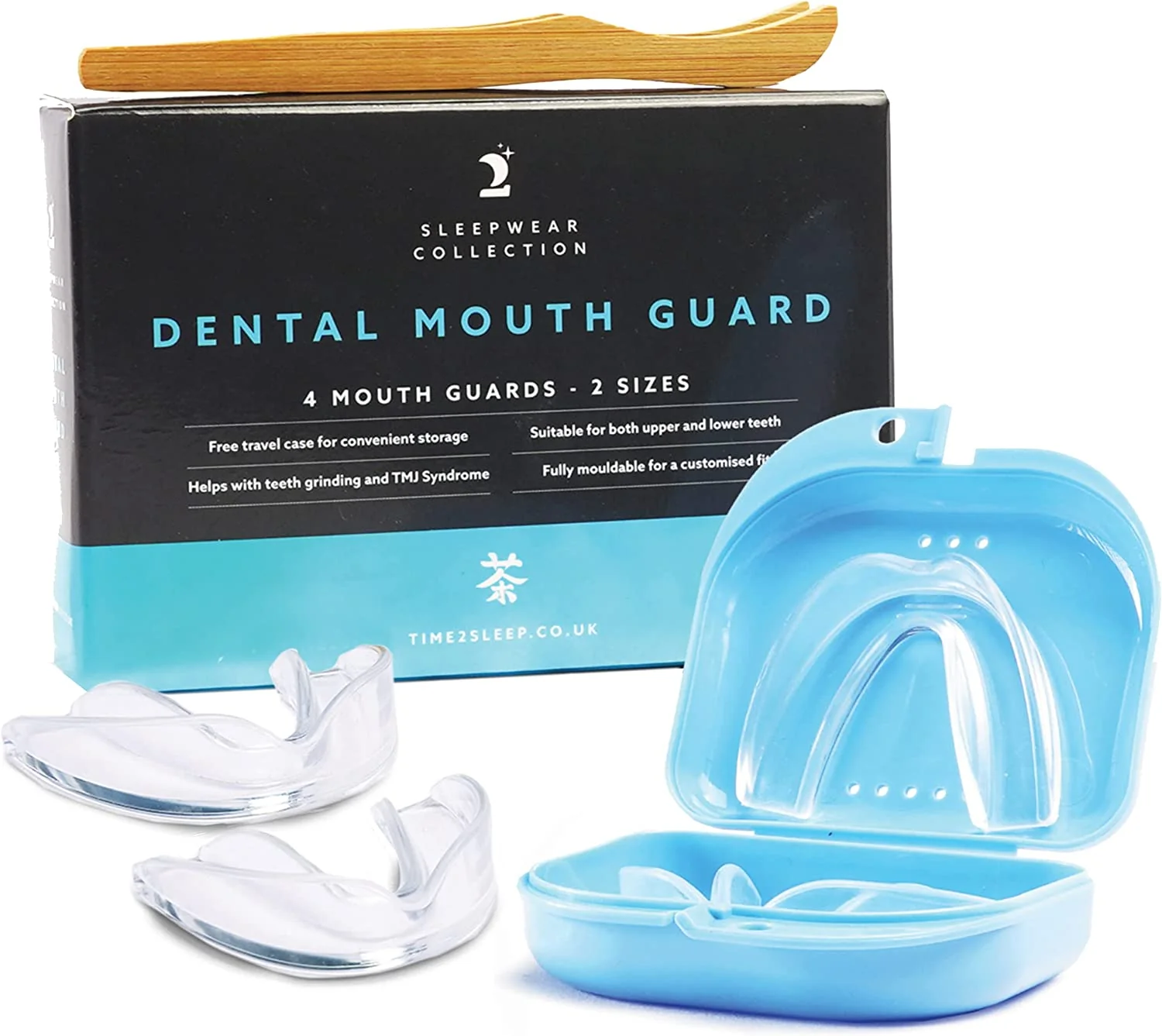 Het grote voordeel van de Time2Sleep gebitsbeschermer is dat deze gemakkelijk op maat te maken is en daardoor GESCHIKT IS VOOR ELKE MONDGROOTTE. Hij is veelzijdig inzetbaar als Bruxism Night Guard, als een Gum Shield tegen tandenknarsen, als een TMJ-mondbeschermer en zelfs als een gebitsbeschermer om uw tanden te bleken.