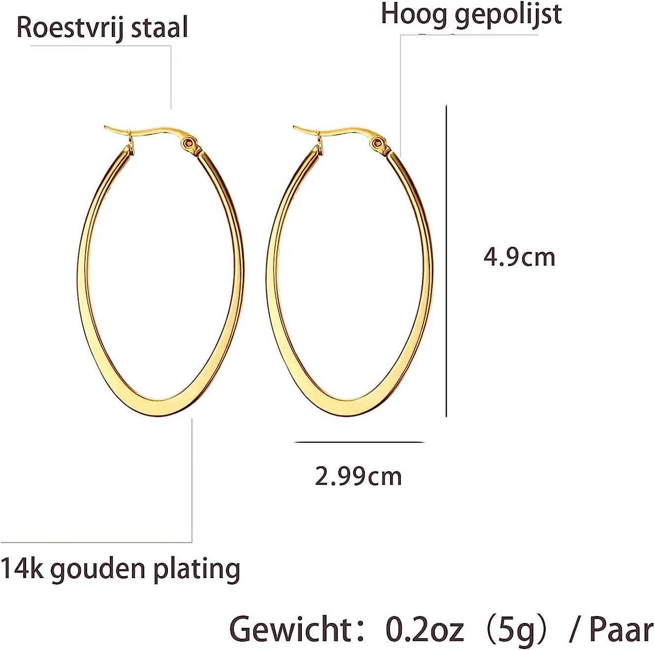 - Ontwerp: Het ovale en veerbelaste ontwerp biedt een moderne touch aan deze anderszins klassieke oorringen.
