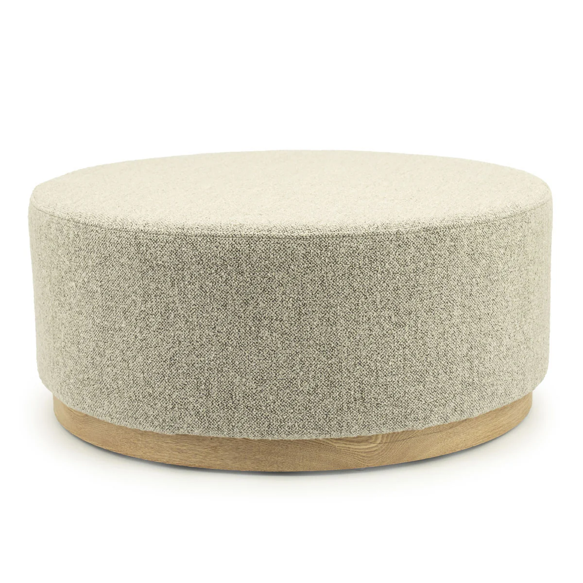 Poef Avah – stof & dennenhout fineer taupe mantz large