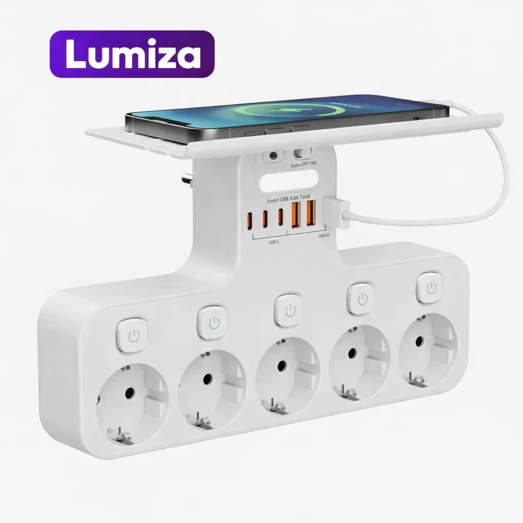 Maak je stopcontact slimmer met PowerHub, de multifunctionele stekker die veiligheid, gemak en verlichting combineert in één compact ontwerp. Met 11 slimme functies — waaronder 5 stopcontacten, een nachtlampje met bewegingssensor en individuele schakelaars — biedt PowerHub alles wat je nodig hebt voor een georganiseerde en veilige stroomvoorziening in huis of op kantoor.