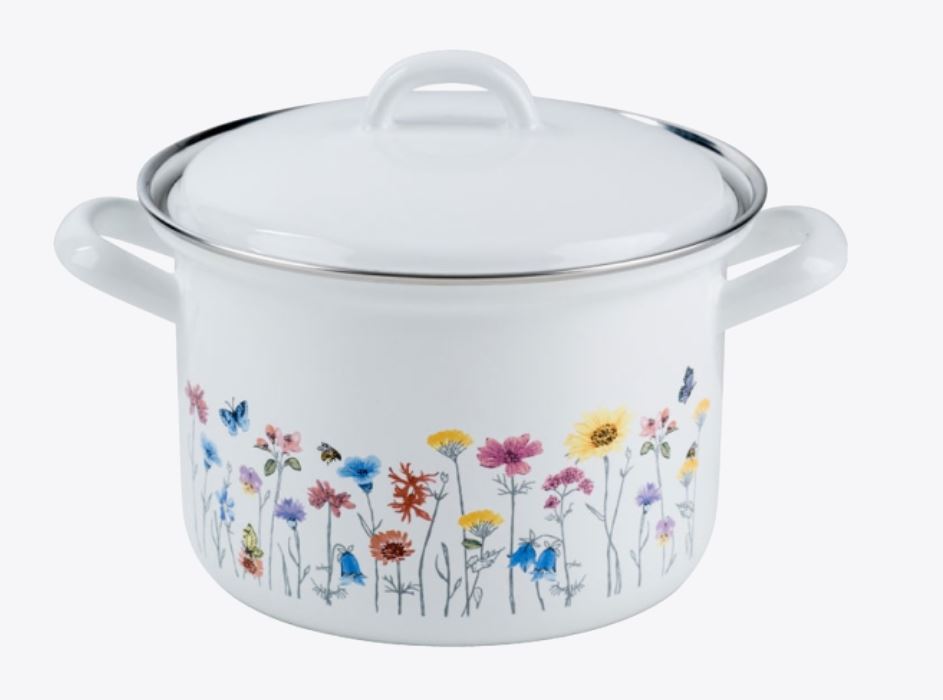 Laat je keuken opbloeien met de Riess emaille hoge pan Flora – 16 cm