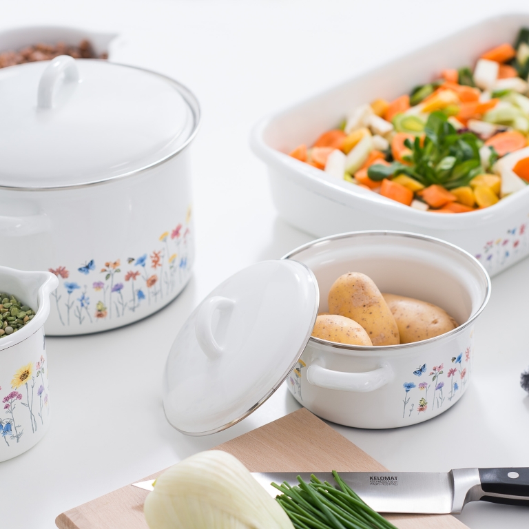Zo is er altijd een formaat dat past bij jouw kookstijl – van het verwarmen van een klein portie soep tot het bereiden van een maaltijd voor het hele gezin. Combineer verschillende maten voor een complete, stijlvolle pannenset met bloemenmotief.