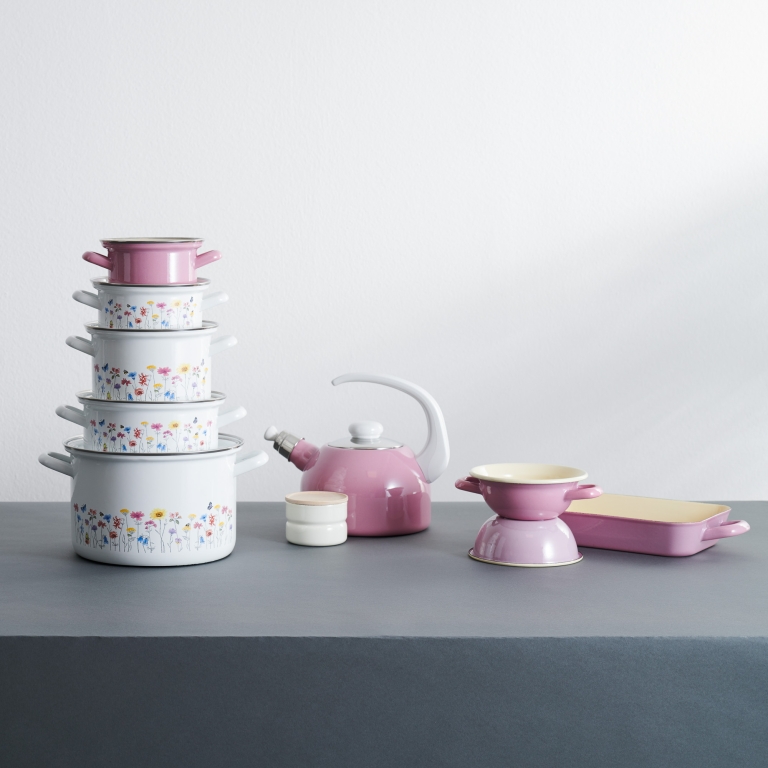 Zo is er altijd een formaat dat past bij jouw kookstijl – van het verwarmen van een klein portie soep tot het bereiden van een maaltijd voor het hele gezin. Combineer verschillende maten voor een complete, stijlvolle pannenset met bloemenmotief.
